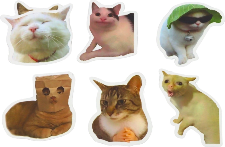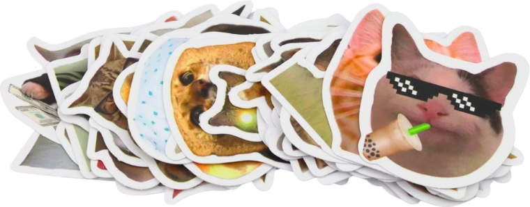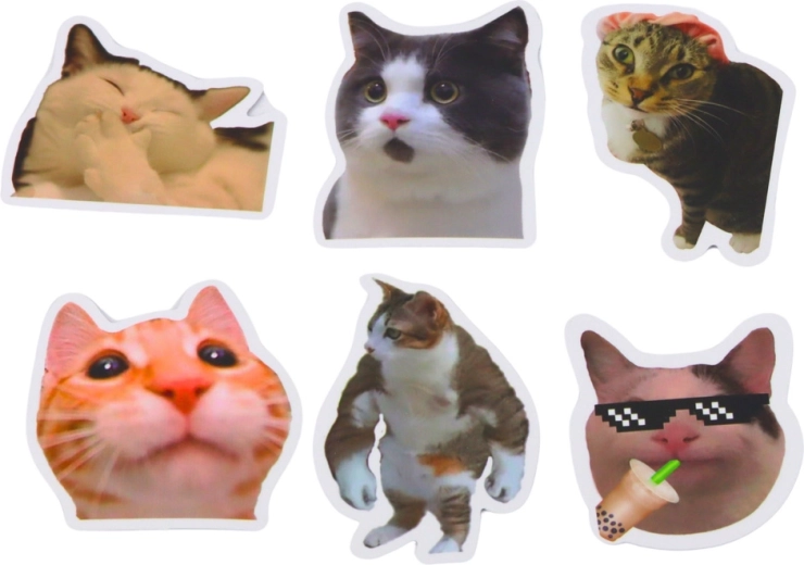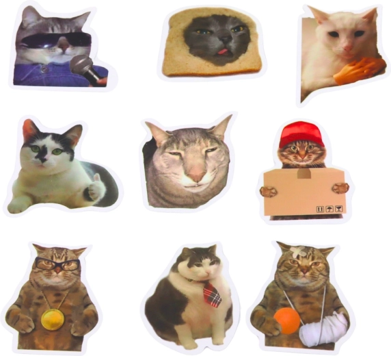 Fino a 50 design diversi di meme felini in un unico pacchetto: combina, attacca, sovrapponi e crea senza limiti.