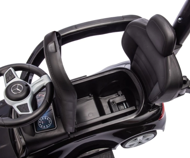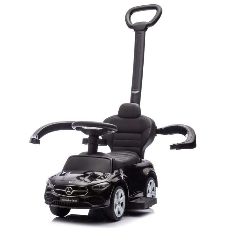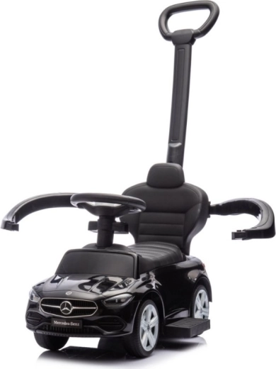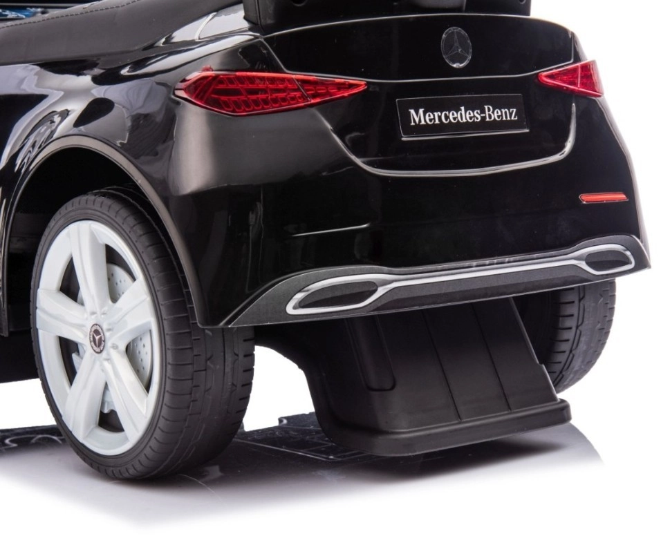 Elegante monopattino per bambini MERCEDES C‑Class in raffinato colore nero che offre aspetto realistico, guida sicura e comfort per i piccoli piloti. Grazie alla maniglia di guida, alle barriere laterali, alle pedane ribaltabili e al vano portaoggetti sotto il sedile, è ideale per le prime uscite e per il gioco in casa, favorendo al contempo lo sviluppo della motricità e della coordinazione.