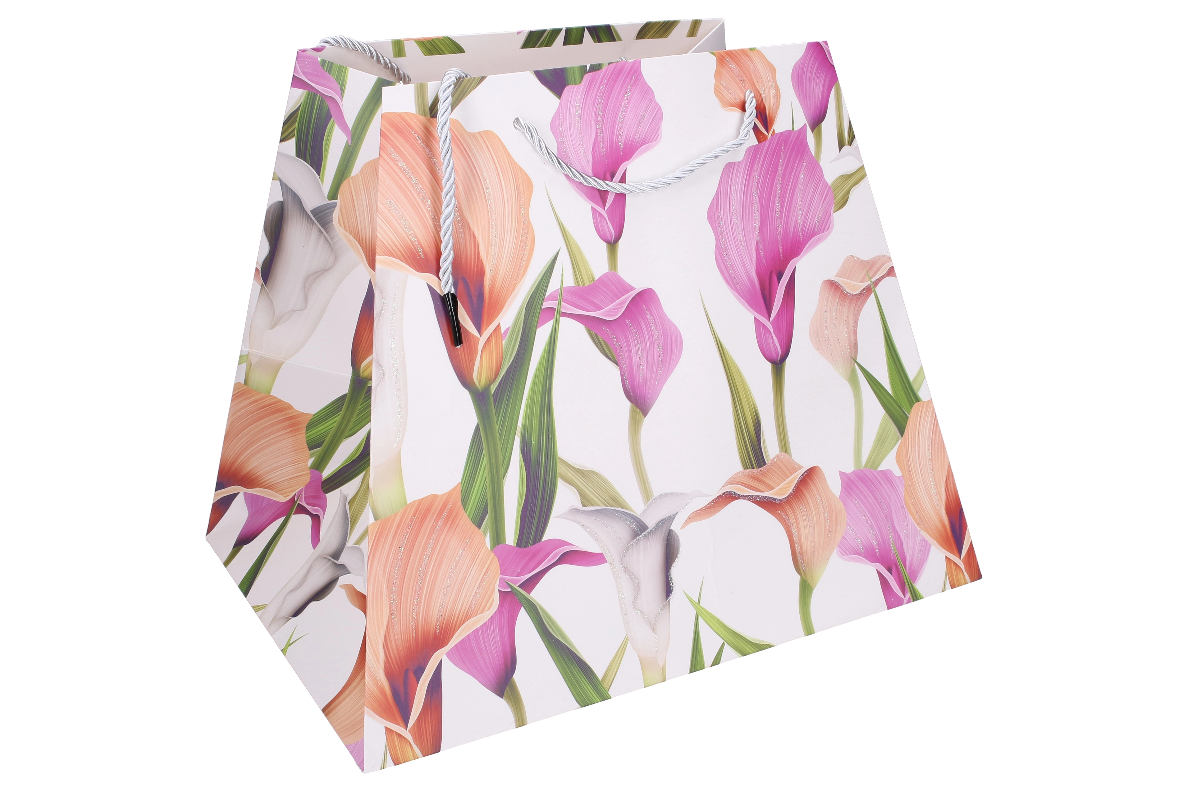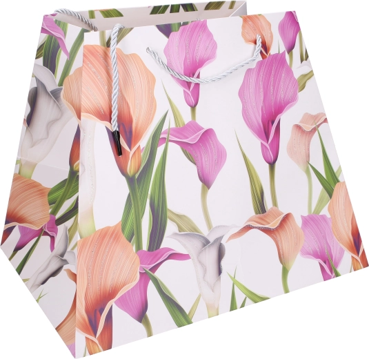 Elegante borsa regalo in misura M con dimensioni 26 × 31,5 × 23 cm, ideale per una consegna dei regali con stile tutto l’anno. Grazie alla struttura in carta robusta, ai manici in cordoncino rinforzati e al fondo a soffietto, trasporta in sicurezza regali da leggeri a medi. Disponibili 4 varianti floreali per ogni occasione.