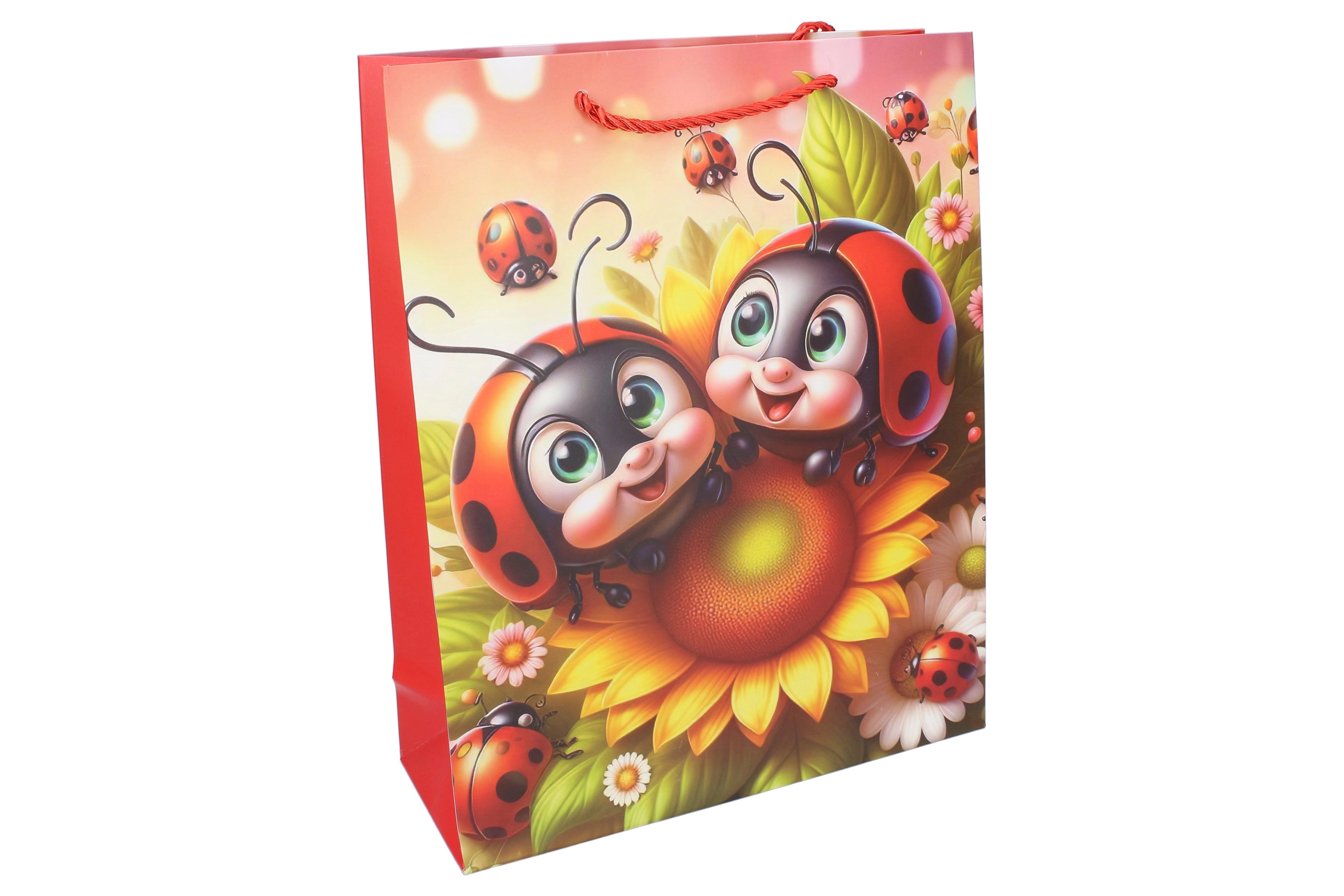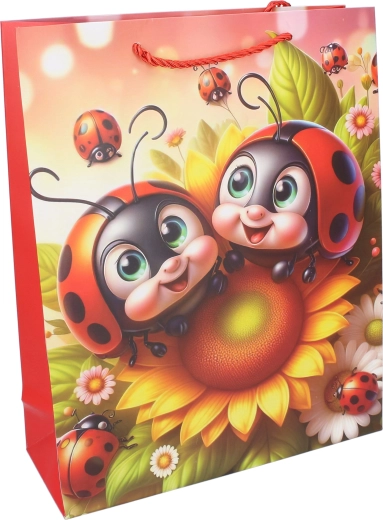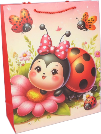 Adorabile borsa regalo in formato compatto S (18 × 24 × 8,5 cm) con motivo infantile di coccinella, perfetta per grandi e piccini. Ideale per regali più piccoli, giocattoli o piccoli oggetti. Offre 4 varianti accattivanti, è robusta, pratica e grazie alla stampa colorata porta gioia già al momento della consegna.
