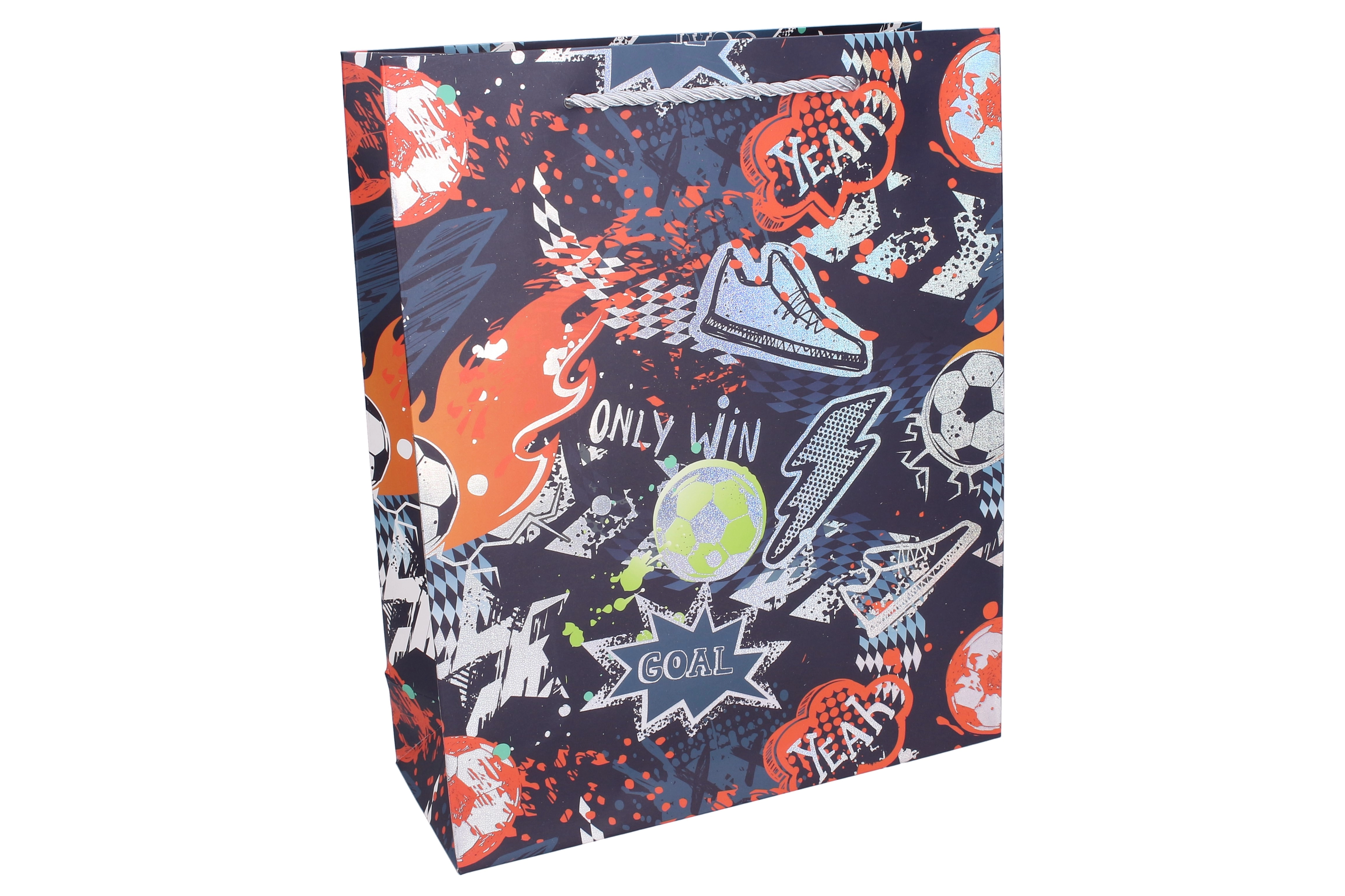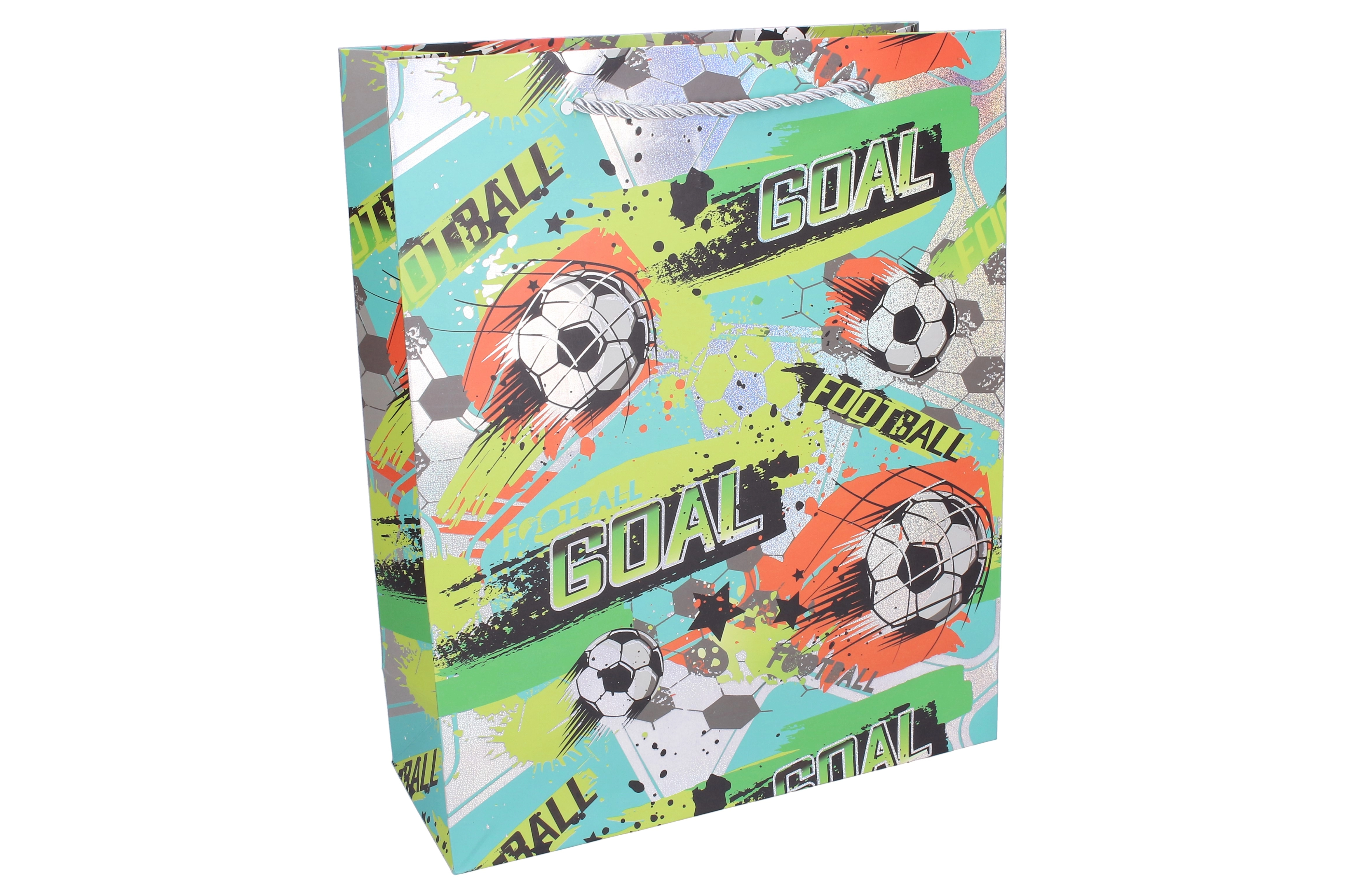 Motivi calcistici vivaci, scritte evidenti e grafica moderna rendono la confezione del regalo davvero spettacolare.