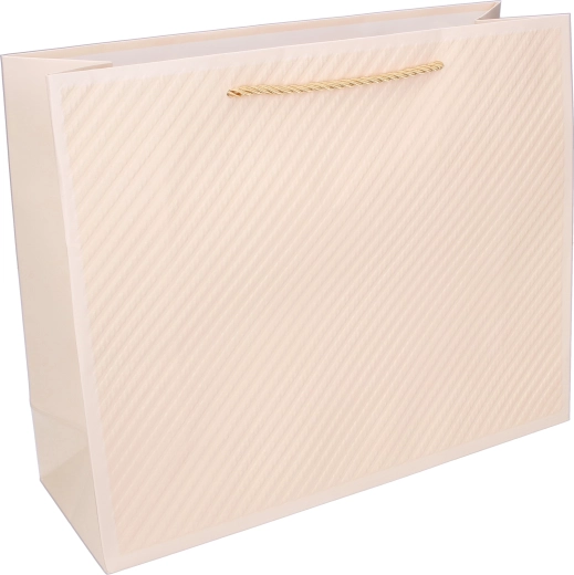 I soffietti laterali e il fondo stabile facilitano il confezionamento di regali più voluminosi e assicurano stabilità durante il trasporto.