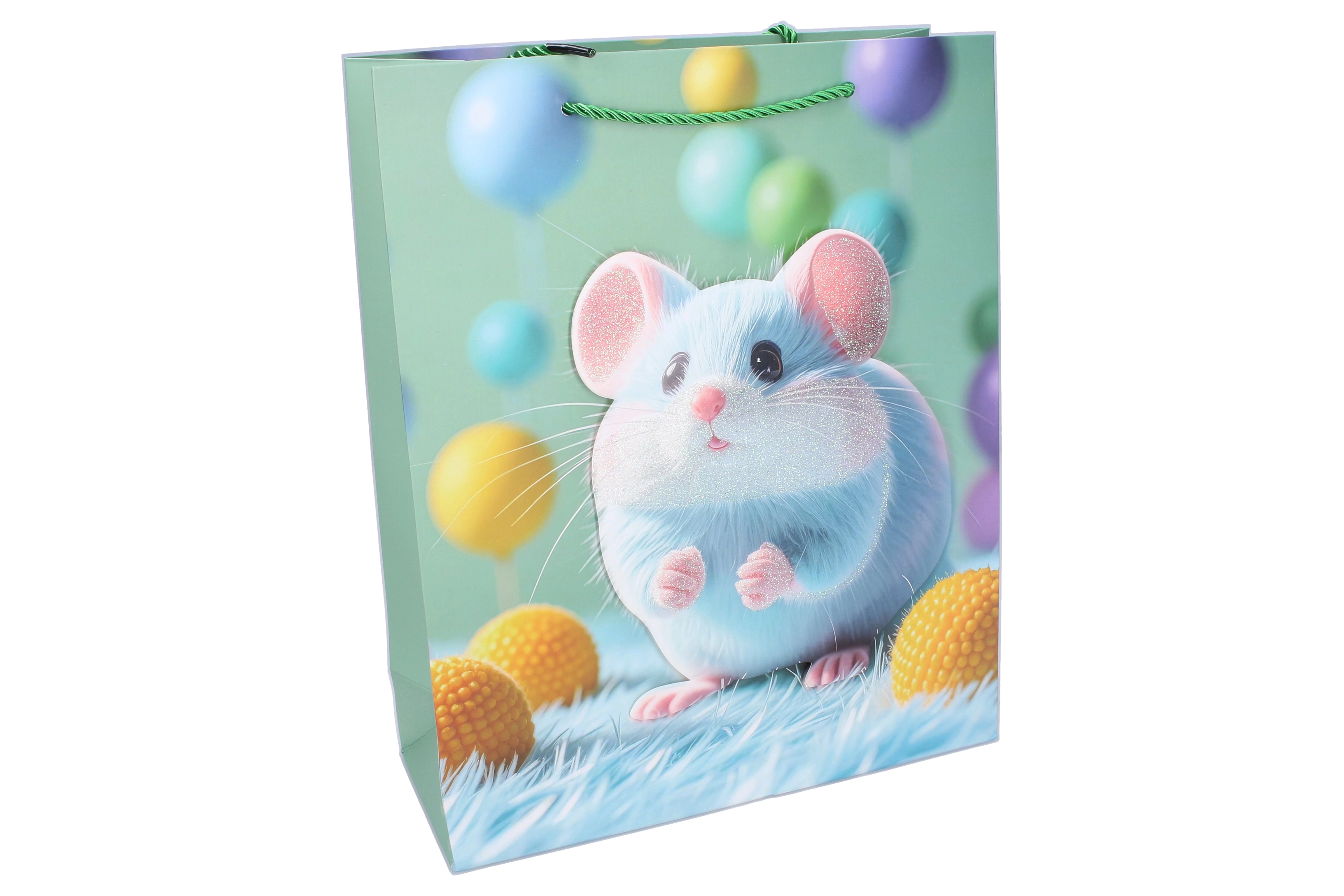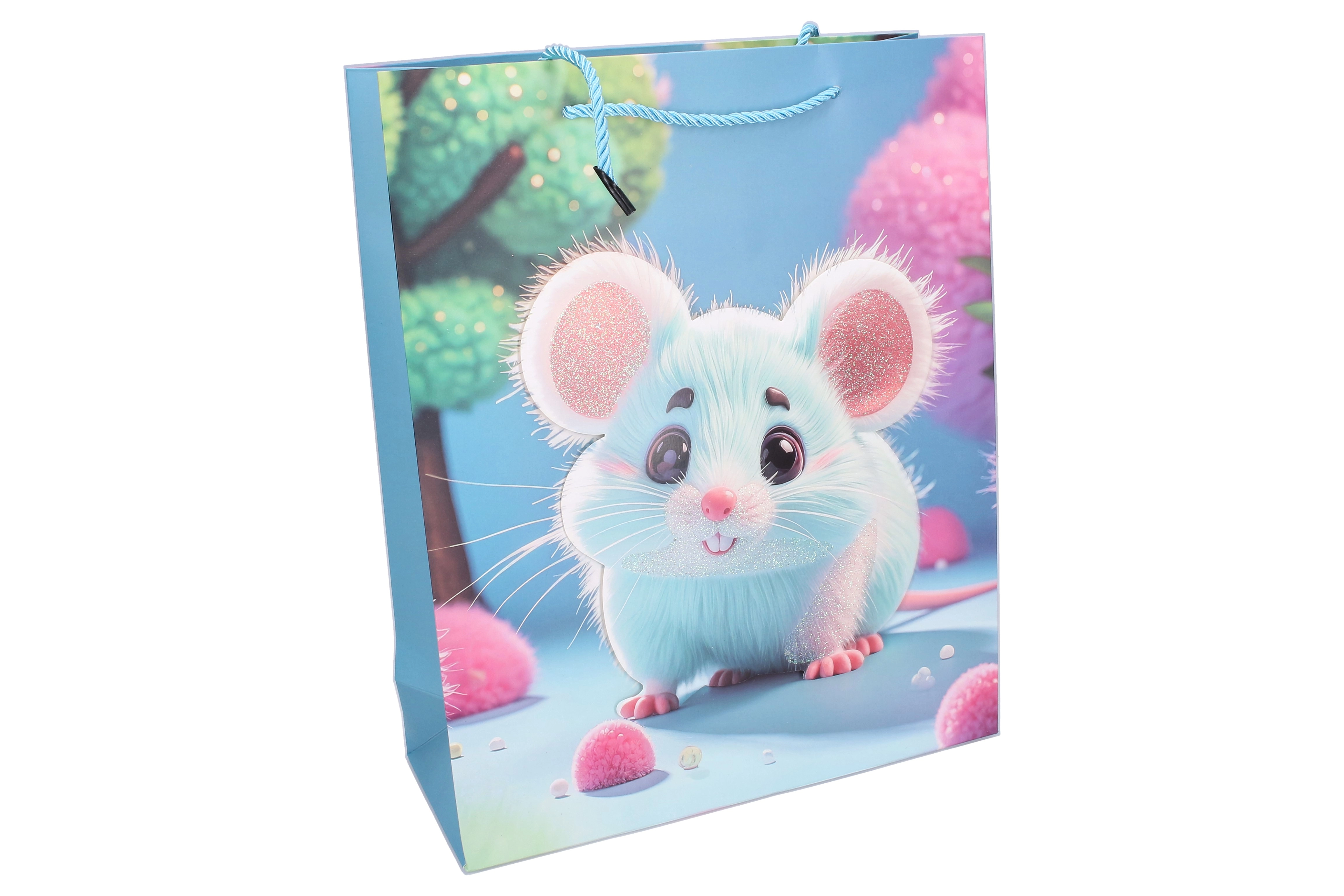 Adorabile sacchetto regalo per bambini in taglia S, ideale per piccole sorprese e feste. Le pratiche dimensioni 18 × 23 × 9 cm garantiscono un facile confezionamento dei regali, mentre il manico robusto e la carta di qualità assicurano un trasporto affidabile. Disponibile in 4 varianti giocose con motivi per bambini.
