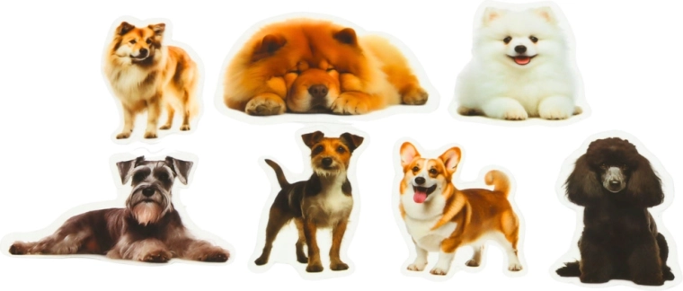Dopo l’applicazione risalta solo il soggetto del cane, senza il fastidioso bordo bianco. Ideale per quaderni colorati, copertine e progetti creativi.