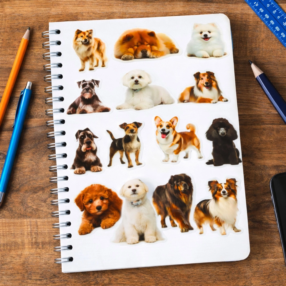 Set di adesivi cani di varie razze, trasparenti, lucidi, 50 pz