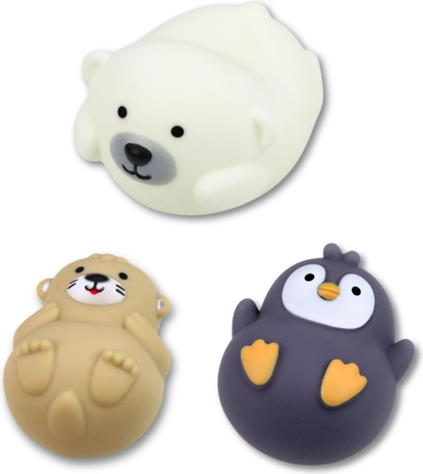 Lontra, pinguino e orso polare sono leggeri, flessibili e ideali per le piccole manine. Spremere e afferrare stimola lo sviluppo della motricità fine e rilassa.