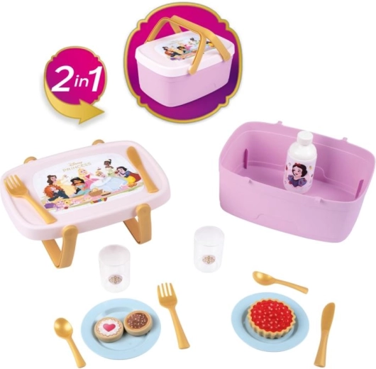 Il magico cestino da picnic con motivi DISNEY PRINCESS farà felici tutte le piccole principesse. Grazie all’ingegnosa soluzione 2 in 1, passi velocemente dal cestino portatile a un tavolino stabile, ideale per giocare a casa o in viaggio. Il ricco set di stoviglie e dolcetti stimola la fantasia e sviluppa le abilità sociali nel gioco di servizio.