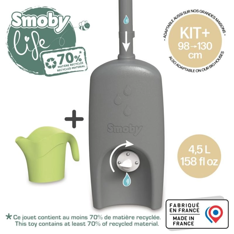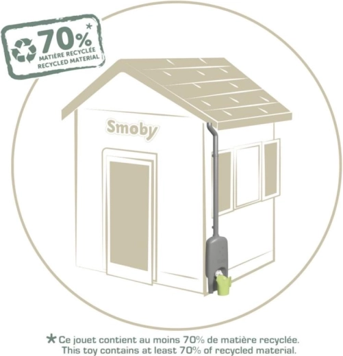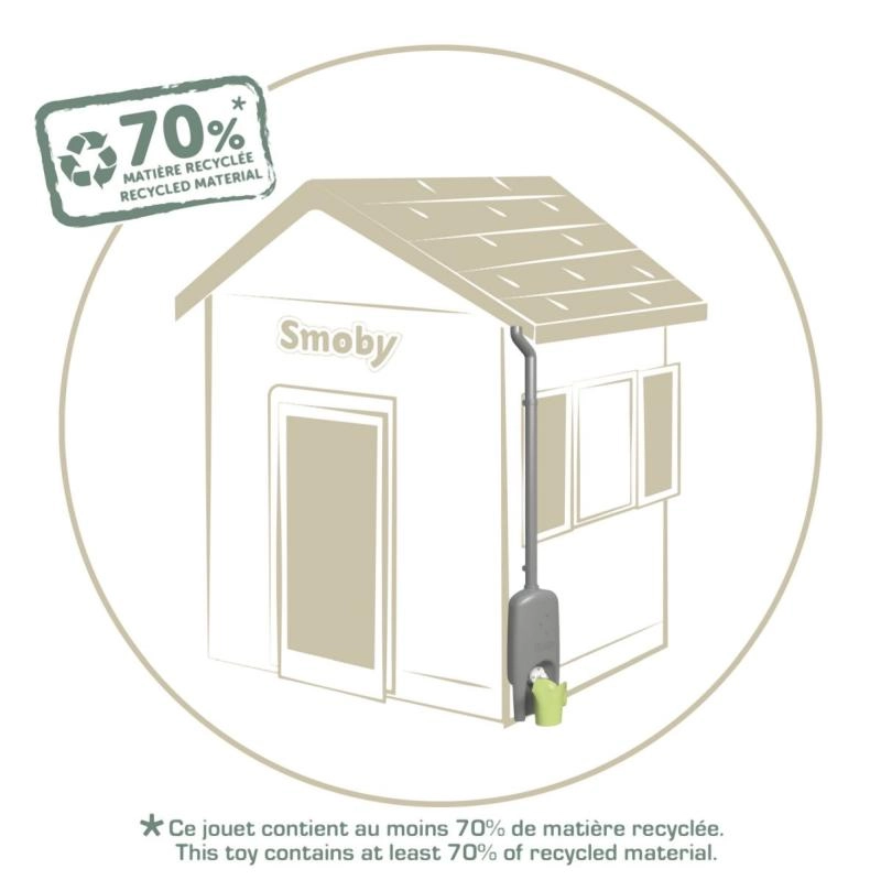 Accessorio pratico per le casette SMOBY – grondaia con serbatoio per l’acqua piovana e annaffiatoio. Il sistema raccoglie l’acqua in un serbatoio da 4,5 l, che i bambini possono usare facilmente per annaffiare. Grazie alla semplice installazione, al grande rubinetto a vite e alla protezione Anti‑UV, questo accessorio è resistente, sicuro e pronto per ore di gioco all’aperto e apprendimento dell’ecologia. Contiene almeno il 70% di materiale riciclato.