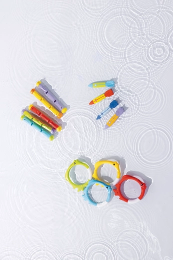 Scopri il divertimento estivo in acqua con il set di siluri da immersione, che motiva i bambini al movimento, migliora l’orientamento sott’acqua e supporta l’allenamento del respiro. Grazie al profilo aerodinamico, i siluri scivolano in modo stabile fino a 6 metri e il loro materiale morbido ma resistente garantisce un gioco sicuro.