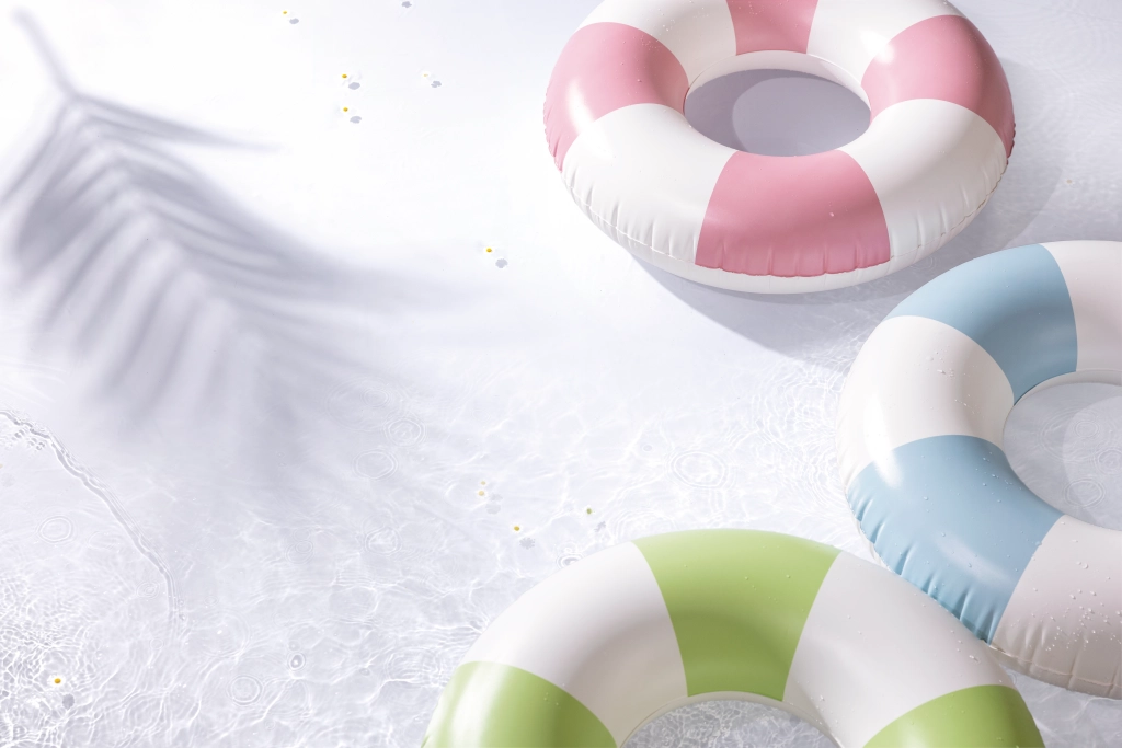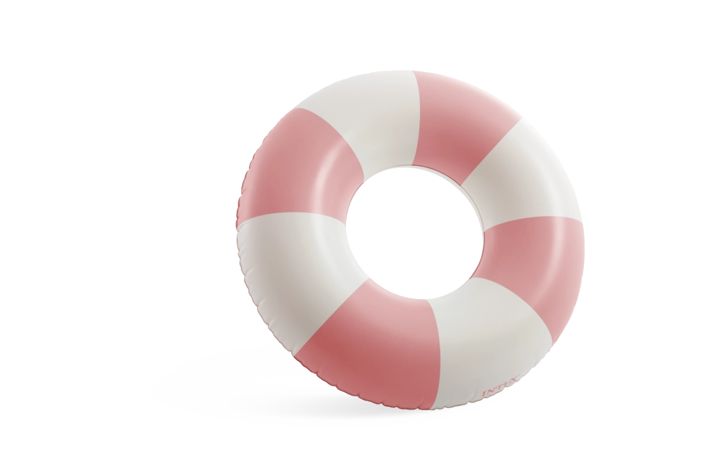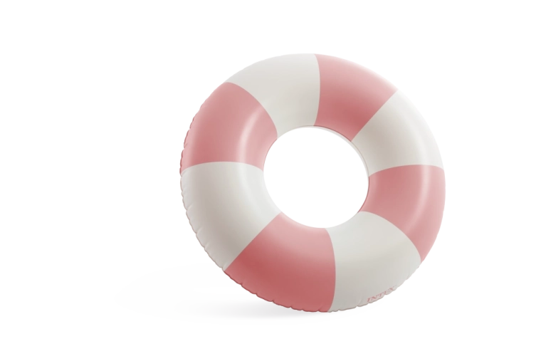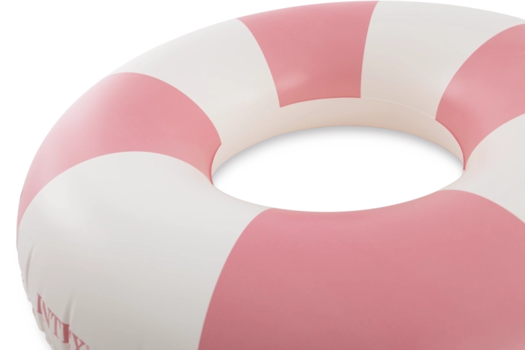 La combinazione trendy di rosa, blu e verde con segmenti bianchi non solo ha un ottimo look, ma aumenta anche la visibilità del salvagente in acqua.