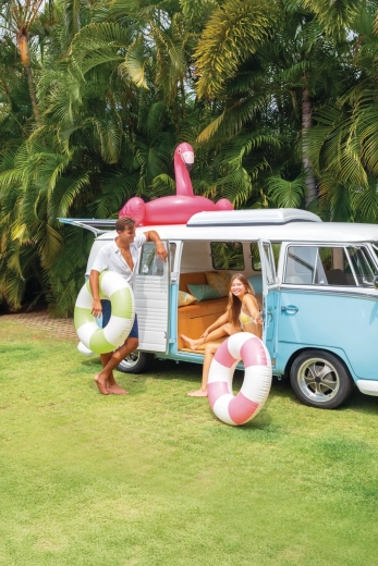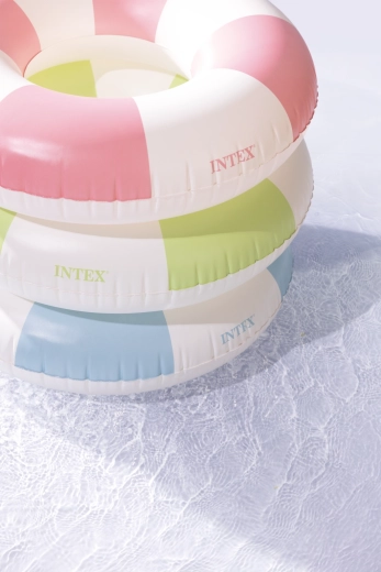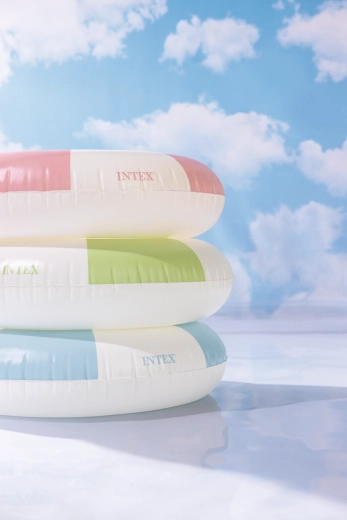 Il salvagente gonfiabile Coastal Cabana combina un design fresco in tonalità pastello di blu, verde e rosa con funzioni pratiche per divertirsi in acqua in modo sicuro e confortevole. Grazie al diametro di 91 cm offre spazio sufficiente e comodità sia in piscina che al mare.