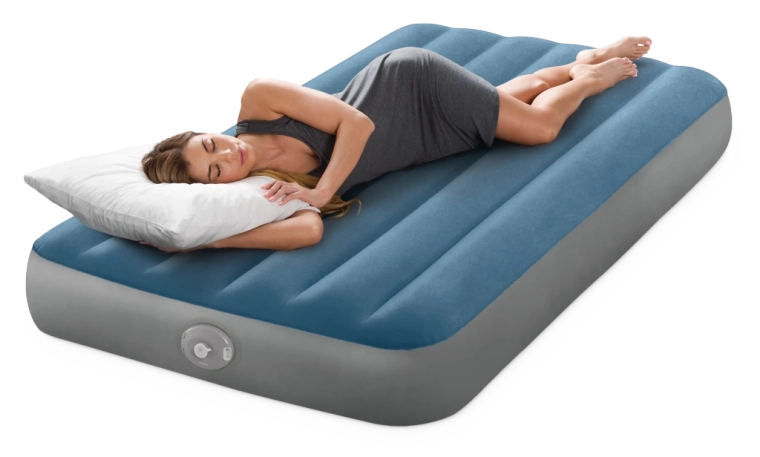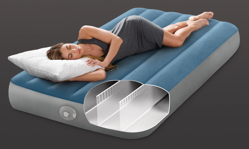 Il letto gonfiabile Twin Prestige Downy è progettato per un sonno stabile e confortevole. La struttura brevettata Fiber‑Tech con migliaia di fibre resistenti distribuisce la pressione lungo tutto il corpo, mentre la superficie vellutata blu‑grigio è piacevole al tatto e previene lo scivolamento del lenzuolo.