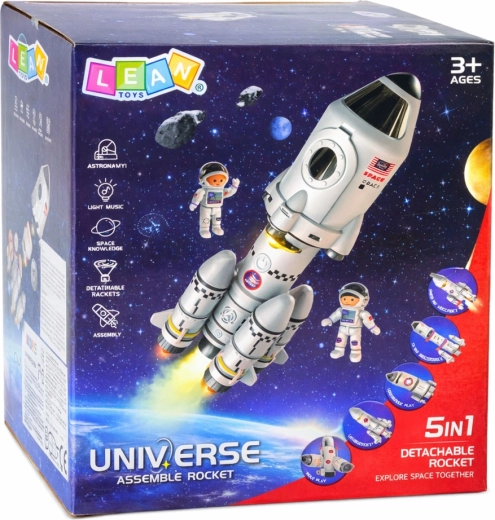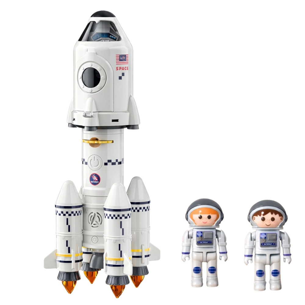 La struttura modulare permette facile montaggio e smontaggio degli elementi e la creazione di diverse configurazioni del razzo e della navicella. Le figure degli astronauti incoraggiano il gioco di ruolo e la creazione di storie proprie. Gli adesivi decorativi donano al razzo un aspetto originale.