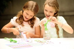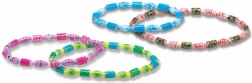 Contiene strisce di carta colorata e materiali necessari per creare perline e braccialetti.