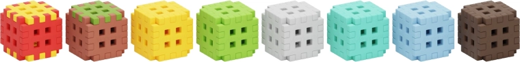 Blocchi morbidi con fori e scanalature si assemblano facilmente anche per i più piccoli. Il materiale è piacevole al tatto e resistente all’uso quotidiano.