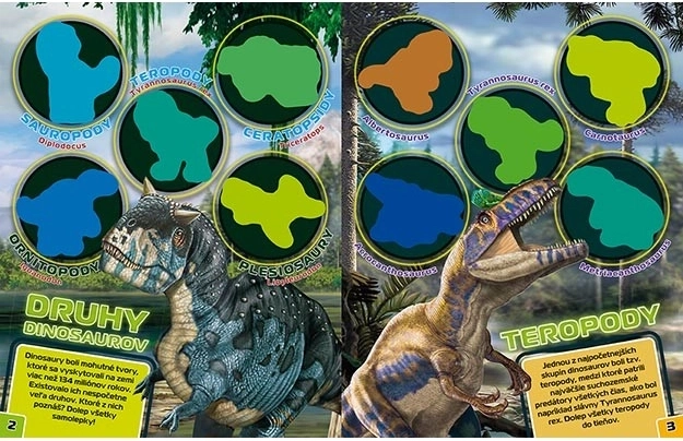 Divertente libro adesivo per i piccoli amanti della preistoria. Include 12 pagine e 4 fogli di adesivi, alcuni dei quali hanno bordi luminosi che brillano al buio. I bambini possono creare facilmente proprie avventure con i dinosauri e allenare fantasia e motricità fine.