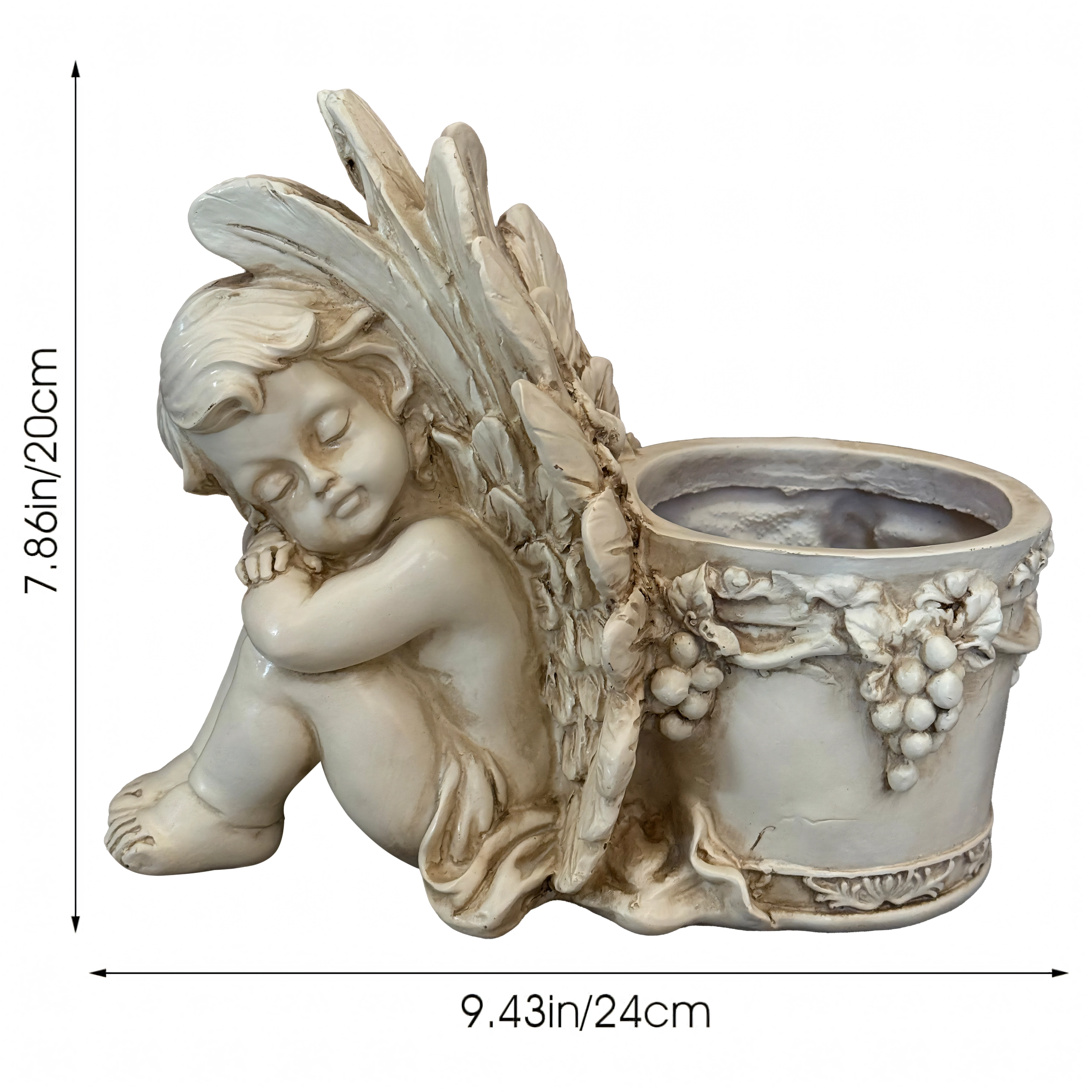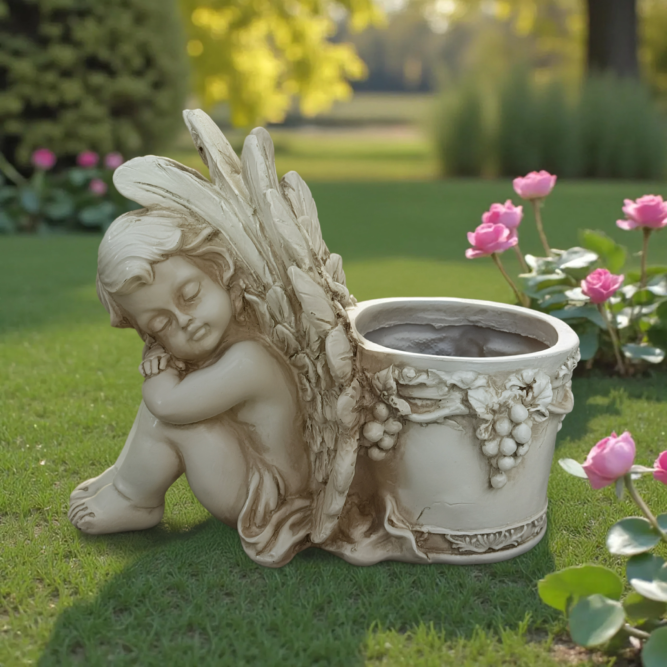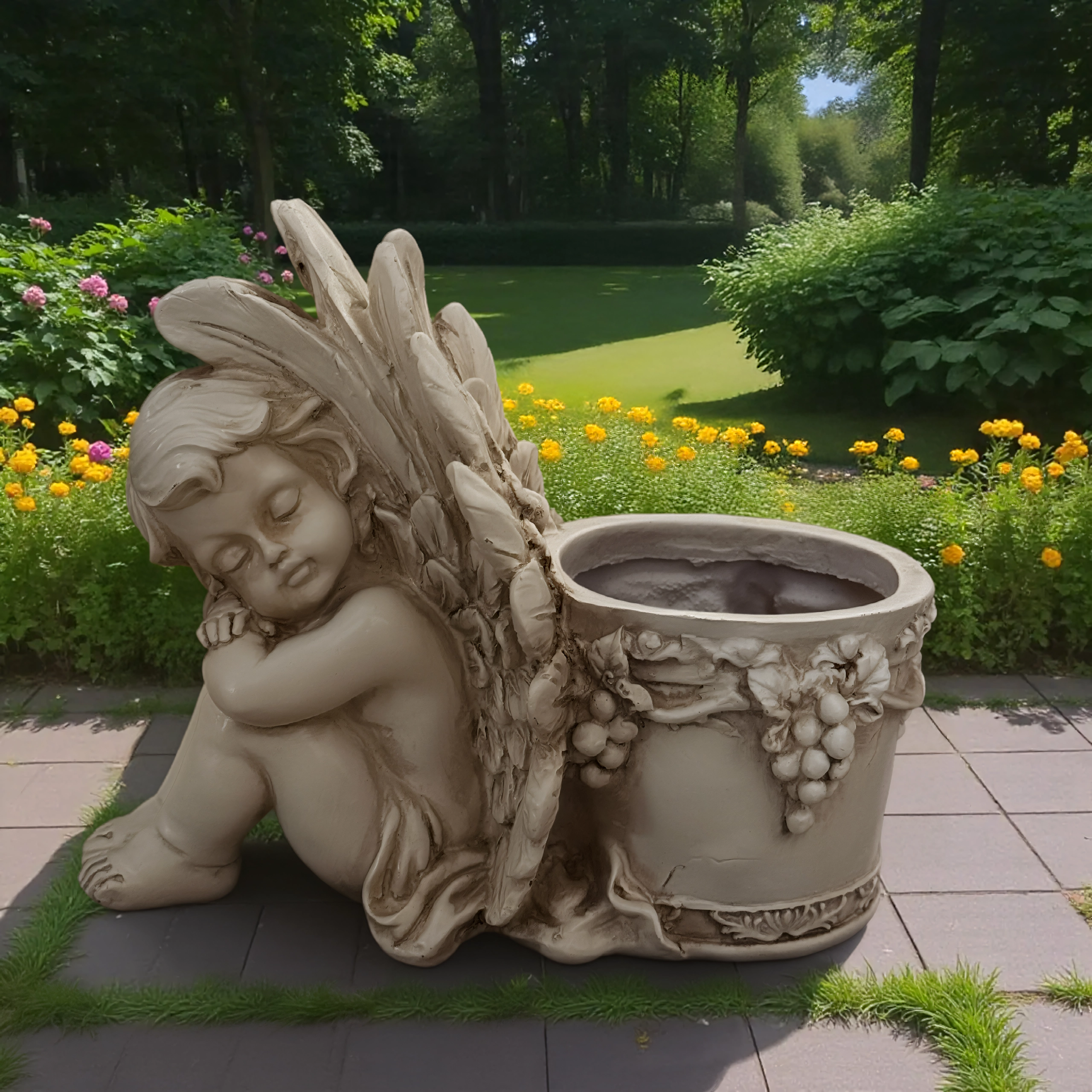 Vaso decorativo con angioletto addormentato – statuetta da giardino