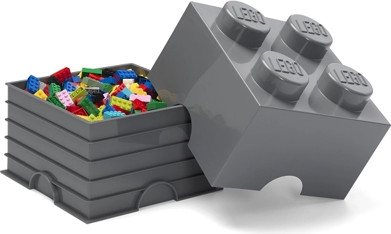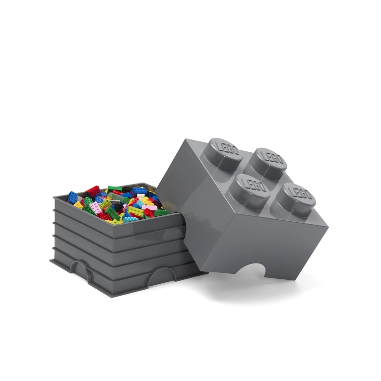 Trasforma le pulizie quotidiane in un gioco. Il box portaoggetti LEGO 4 in colore grigio scuro è la soluzione ideale per riporre in modo ordinato mattoncini, set di costruzione e piccoli giocattoli. Grazie all'iconico aspetto del mattoncino porta stile e ordine nella stanza.