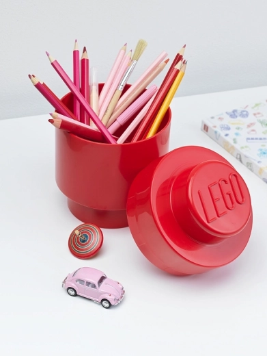 Porta ordine e un tocco giocoso alla stanza con il contenitore rotondo ispirato all’iconico mattoncino LEGO. Grazie alle dimensioni compatte è perfetto per la scrivania, la mensola o l’angolo dei bambini e contiene senza problemi cancelleria, piccoli giocattoli o pezzi da costruzione.