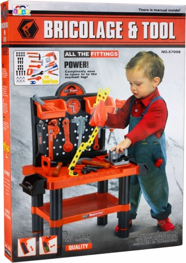 - Dotazione completa: trapano, morsa, righello, chiavi, cacciaviti, sega, martello e altro.