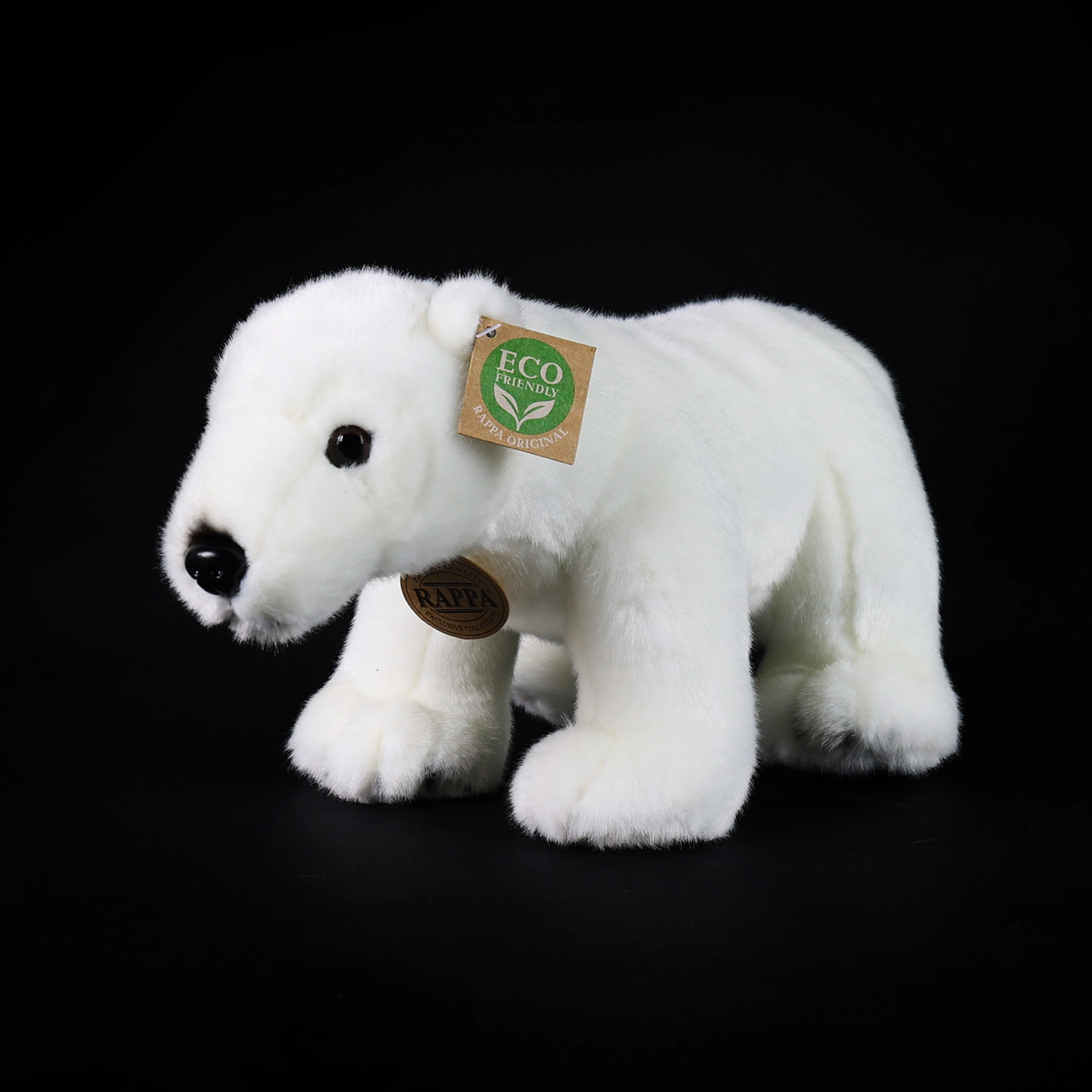 Adorabile orso polare di peluche da 30 cm della collezione esclusiva RAPPA, perfetto per bambini e adulti. Realizzato con materiali di alta qualità e morbidissimi, con finitura artigianale per un aspetto realistico. Grazie all'imbottitura eco-friendly in materiali riciclati è rispettoso della natura e sicuro anche per i più piccoli.
