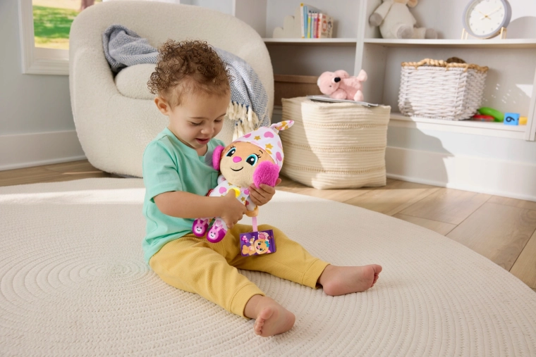 Il peluche interattivo Impara e Ridacchia! è il compagno ideale per i rituali serali e per i momenti tranquilli della giornata. Con il pigiamino dalle fantasie giocose e il cuoricino luminoso crea un’atmosfera piacevole per calmarsi, rilassarsi e addormentarsi.