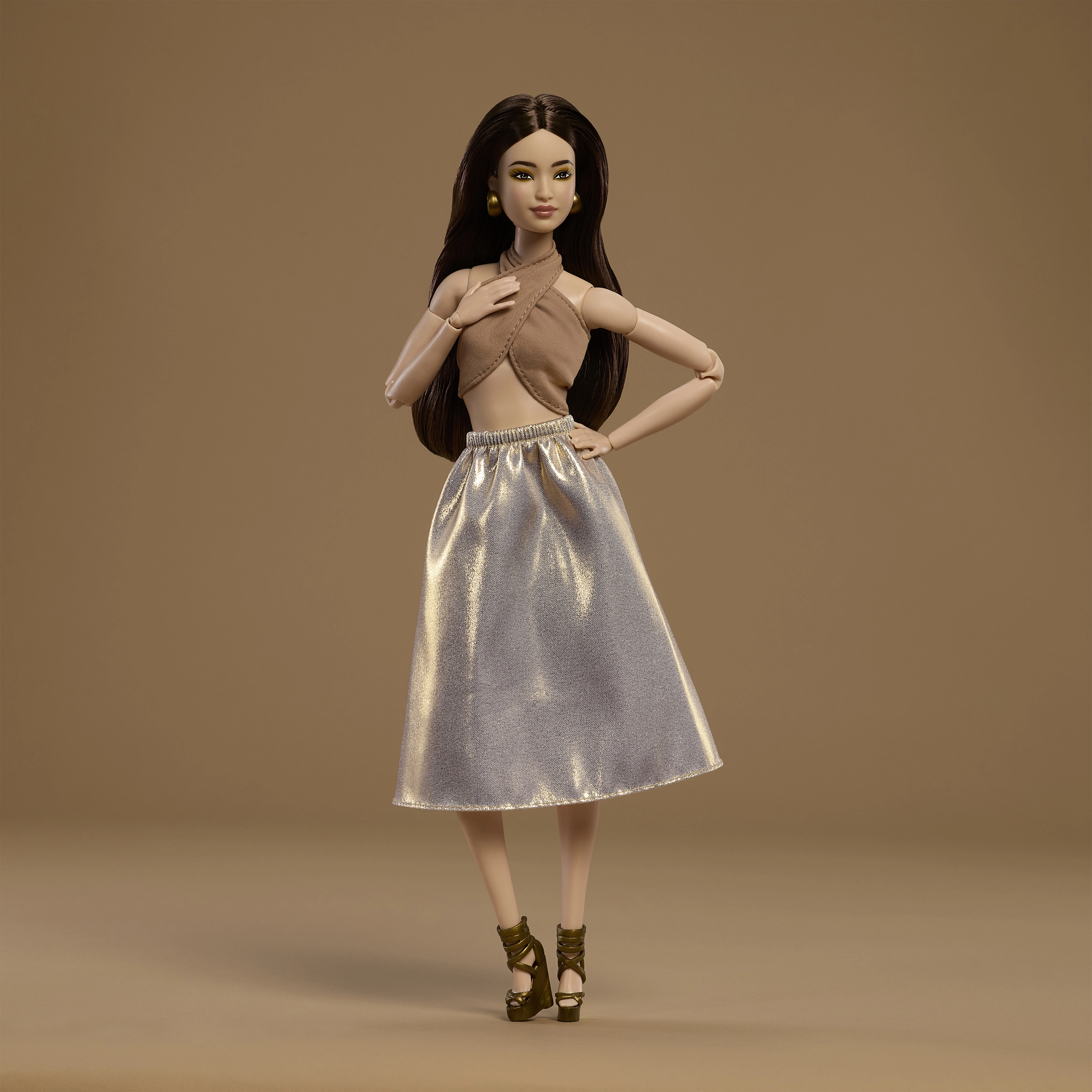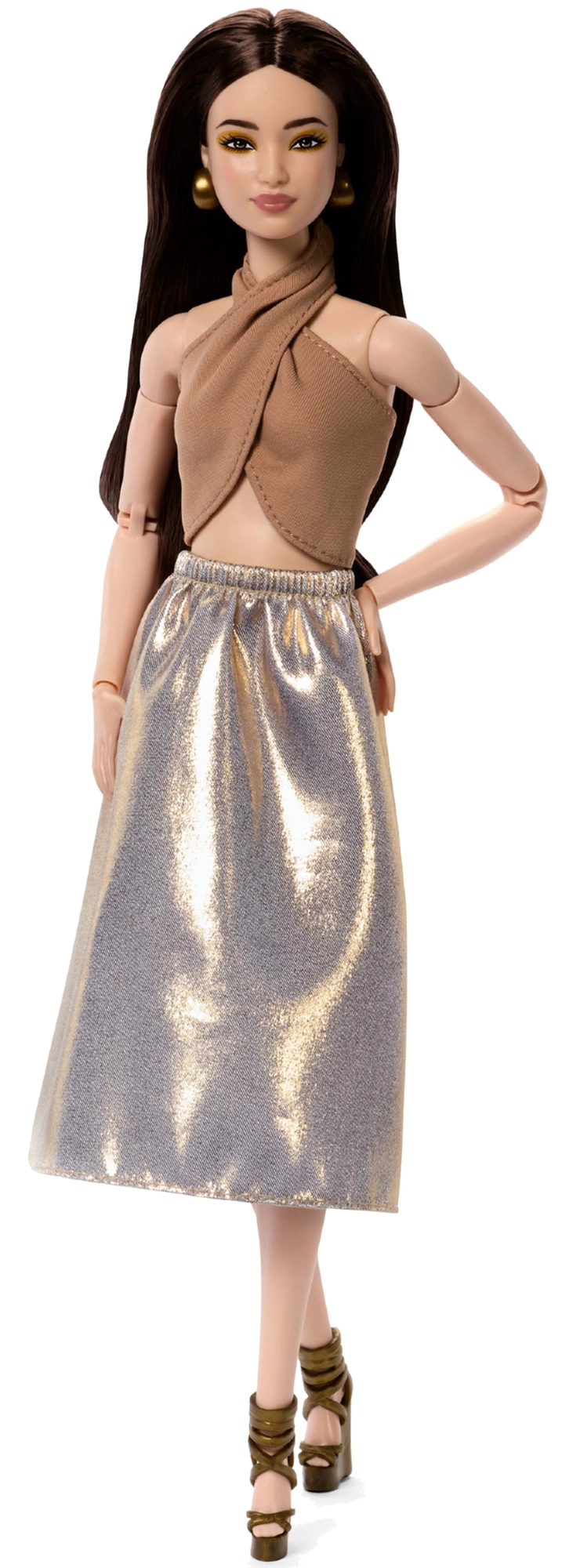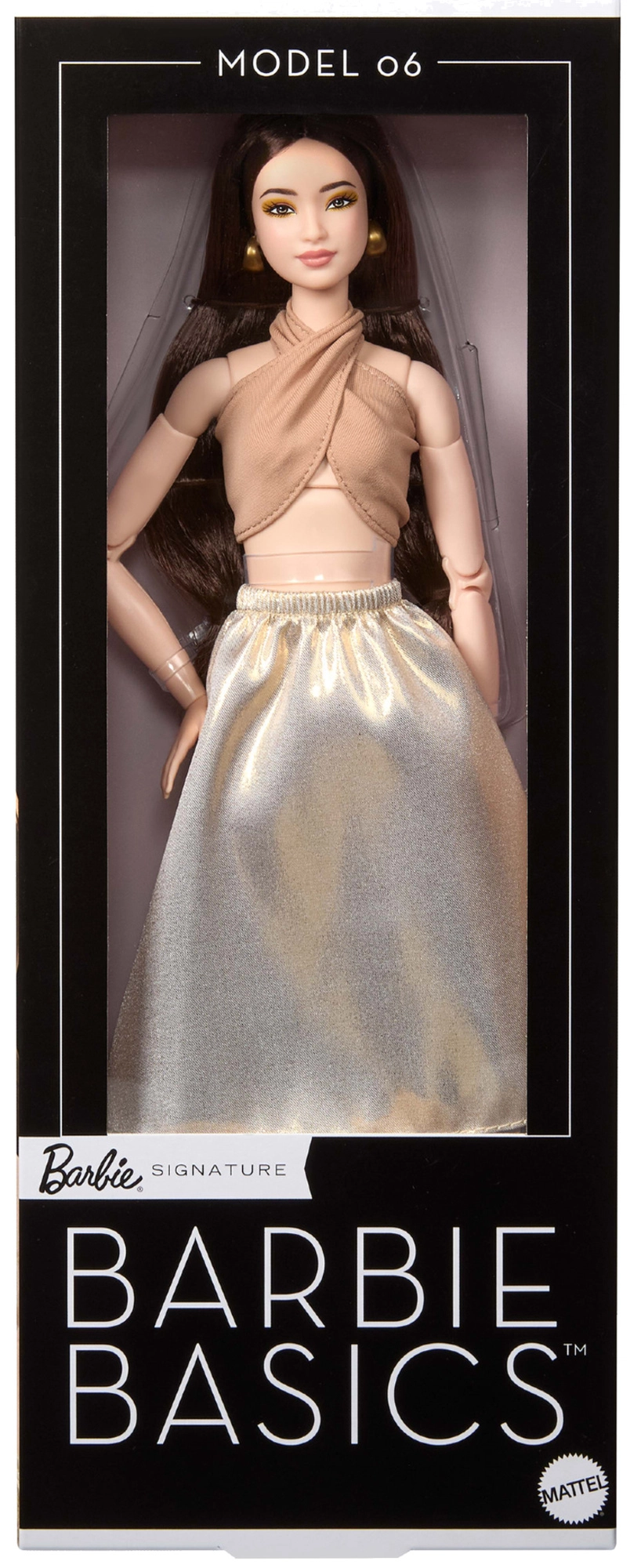 Il modello 06 della serie Barbie Signature Basics porta un'eleganza minimalista nelle tonalità beige chiaro e oro. La combinazione di un top elegante e una gonna morbida esalta un look moderno e senza tempo. La bambola ha carnagione chiara, silhouette slanciata e un make-up armonioso e discreto che valorizza la sua bellezza naturale.