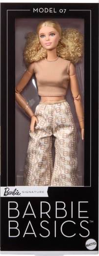La bambola BARBIE Signature Basics Modello 07 celebra il minimalismo e l'eleganza moderna. Il viso delicato con occhi azzurri, trucco raffinato e carnagione chiara sottolinea la sua bellezza classica. I capelli biondi ricci sono acconciati in un look semplice che si abbina all'estetica pulita dell'intera serie.
