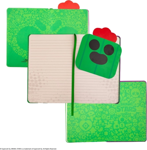 Scopri la copertina rigida originale per quaderno ispirata al personaggio Spike del gioco BRAWL STARS. Il fronte verde con dettagli neri in rilievo di occhi e bocca crea un accattivante effetto 3D, mentre il retro viola con motivo floreale in rilievo dona alla copertina un carattere unico. L’imbottitura morbida aumenta il comfort nell’uso quotidiano e protegge angoli e bordi del quaderno.