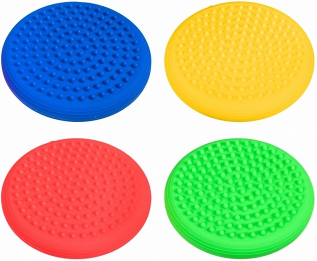 I dischi sono realizzati in materiale resistente ed elastico, piacevole al tatto e adatto all’uso quotidiano. La sicurezza è prioritaria: il prodotto è privo di ftalati, BPA e metalli pesanti e conforme alla marcatura CE. Utili per giochi per bambini, in ergoterapia e fisioterapia, e come tappetini massaggianti per stimolare la pianta del piede.