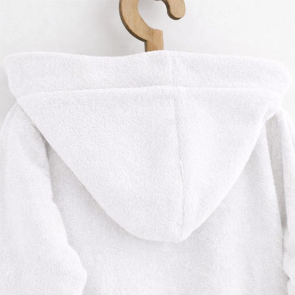 Morbido accappatoio per bambini NEW BABY in spugna di alta qualità, ideale dopo il bagno e il nuoto. Dispone di cappuccio per proteggere la testolina bagnata, cintura cucita che non si perde e tasche profonde per i piccoli oggetti. Realizzato in 100% cotone con certificazione OEKO-TEX STANDARD 100, delicato sulla pelle sensibile dei bambini.