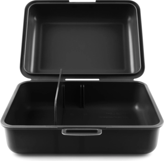 Grazie al divisorio interno separi comodamente frutta, pane o piccoli snack. La chiusura con un solo gancio assicura che il box non si apra durante il trasporto. Per preservare la qualità del materiale e della stampa si sconsiglia il lavaggio in lavastoviglie.
