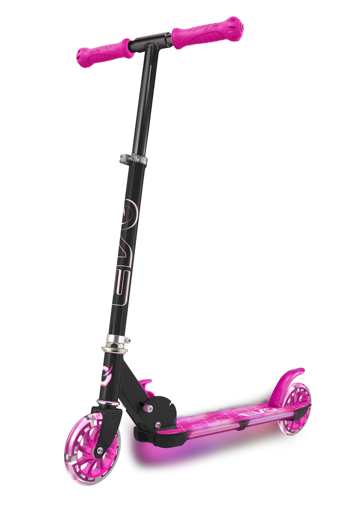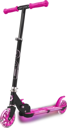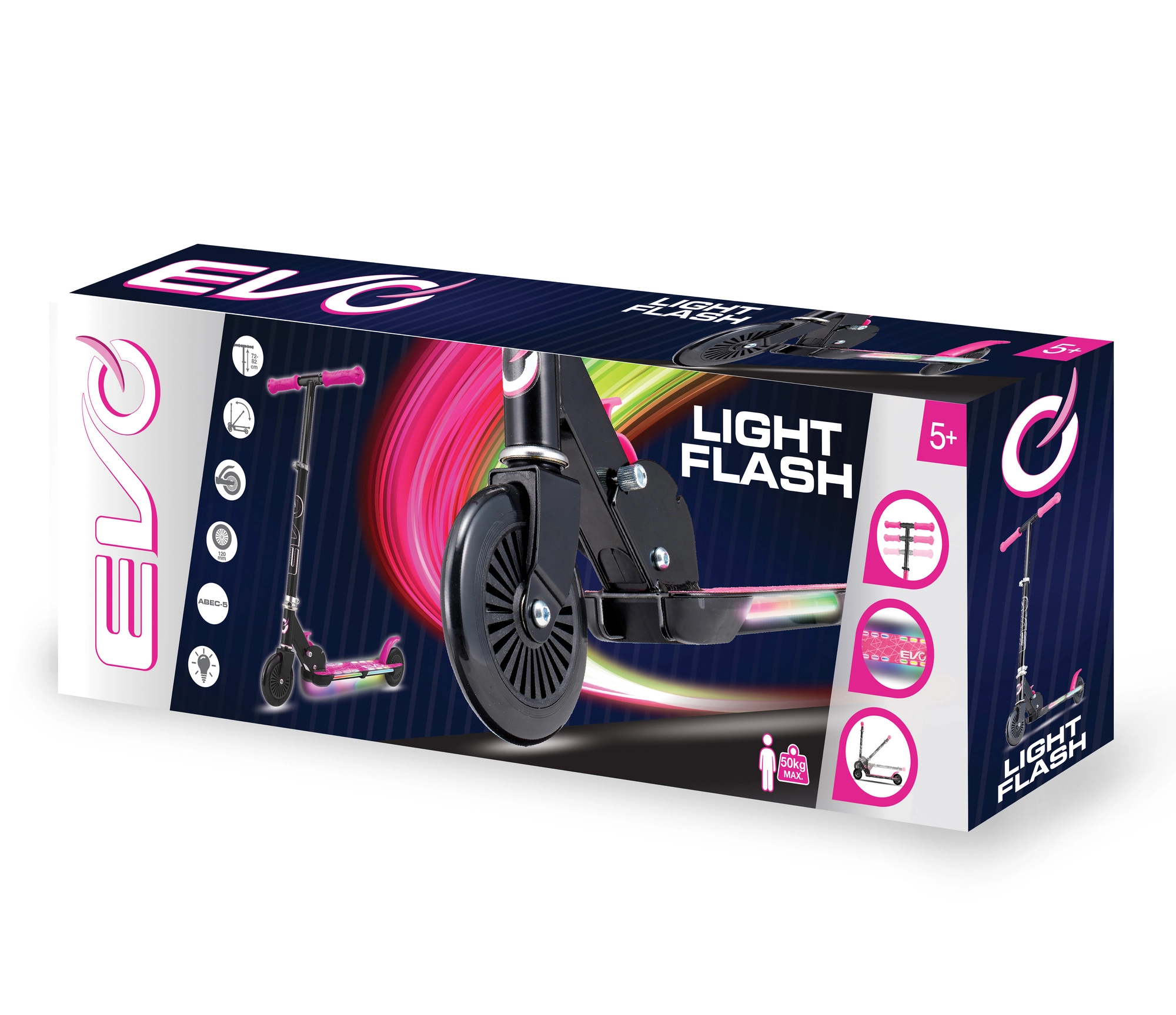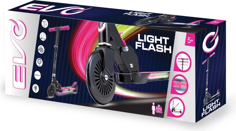 Il monopattino EVO Light Flash è un’ottima scelta per i bambini attivi. Grazie al telaio leggero e pieghevole si trasporta e si ripone con facilità, l’altezza del manubrio regolabile (ca. 67–77 cm) cresce con il bambino e la pedana LED trasforma ogni corsa in uno spettacolo divertente. Le ruote in gomma con cuscinetti ABEC-5 sono pensate per una guida confortevole e silenziosa su superfici lisce.