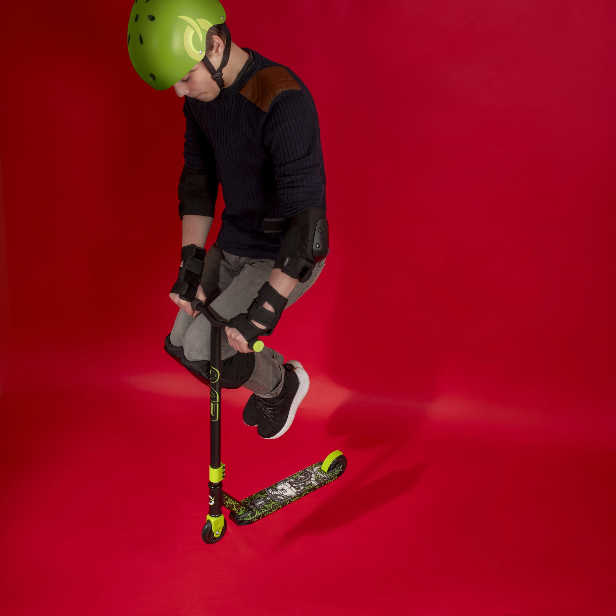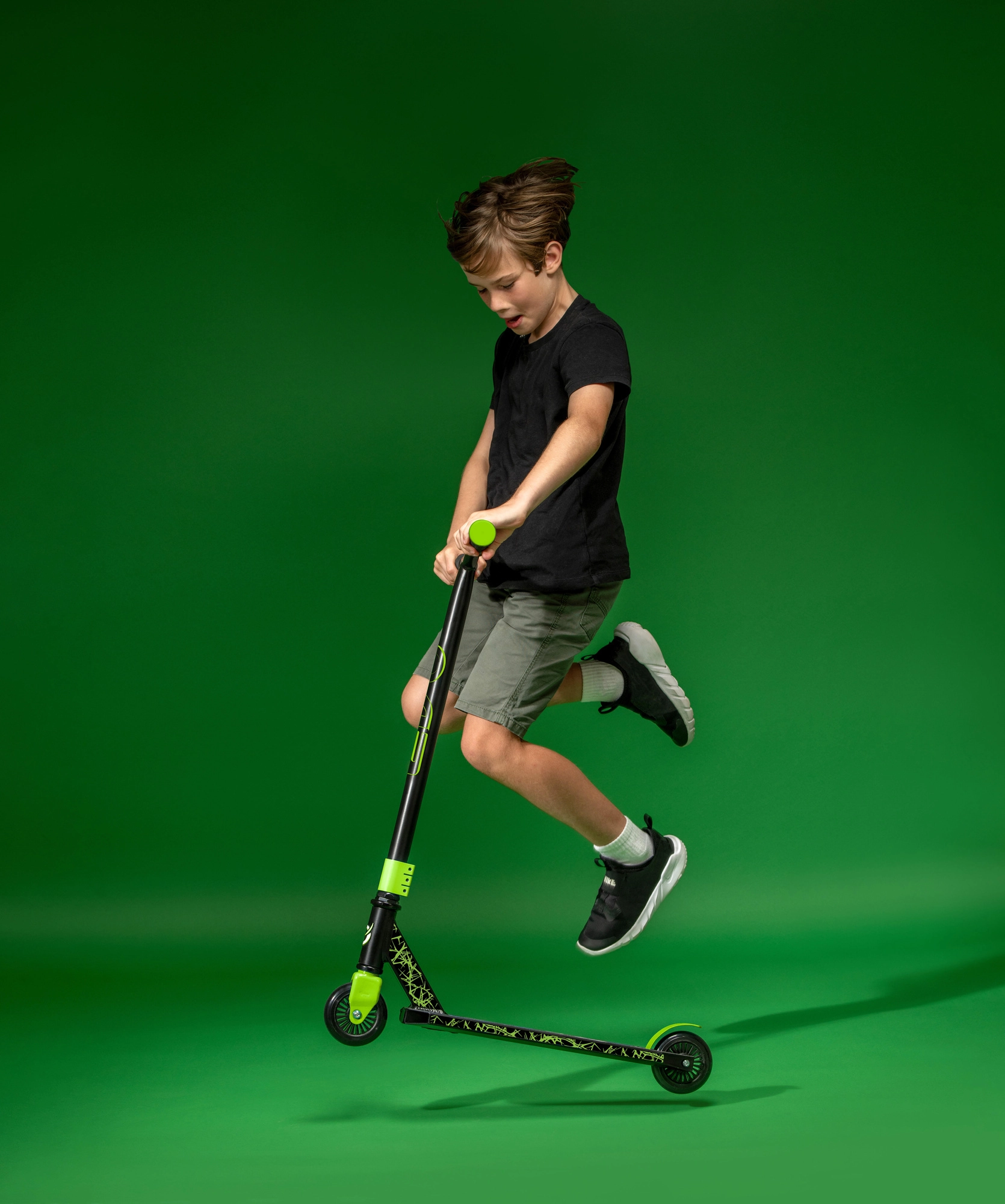 Impugnature antiscivolo e T‑bar stabile ad un’altezza di circa 79 cm offrono ai bambini controllo sul monopattino durante la guida e nei trick di base.
