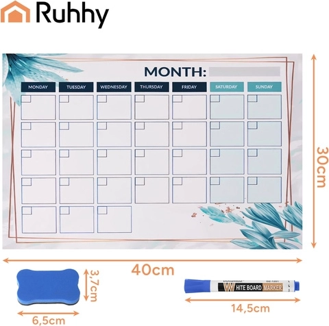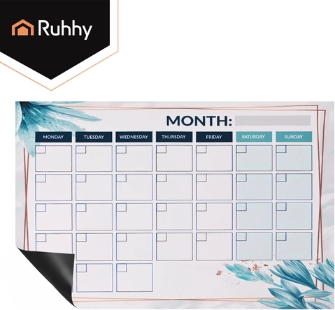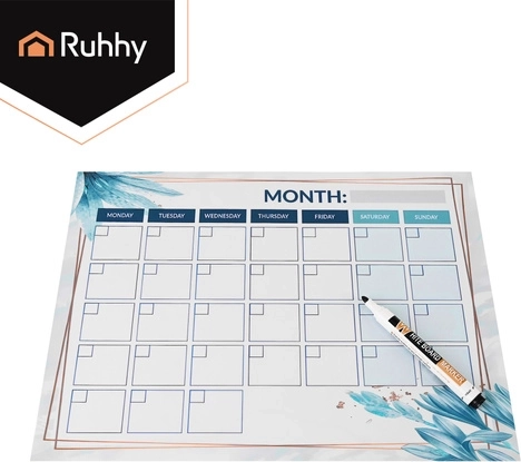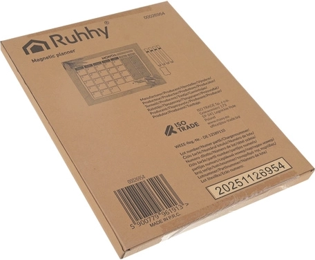 Il planner magnetico RUHHY da 30 × 40 cm è un pratico centro di organizzazione domestica. Grazie alla superficie cancellabile a secco consente di annotare rapidamente i piani, cancellare facilmente senza aloni e gestire con chiarezza giorno, settimana e mese. Sul frigorifero è sempre a portata di sguardo, aderisce saldamente grazie al magnete e nella confezione trovi 4 pennarelli e una spugna magnetica per un uso immediato.