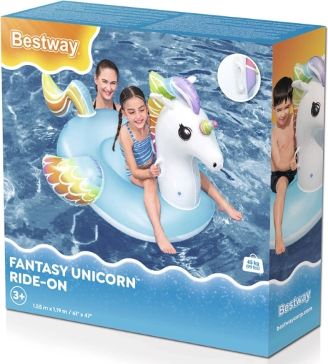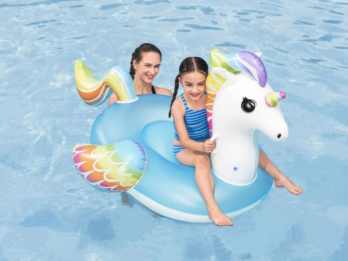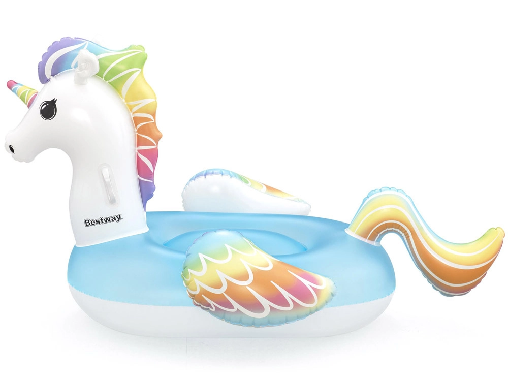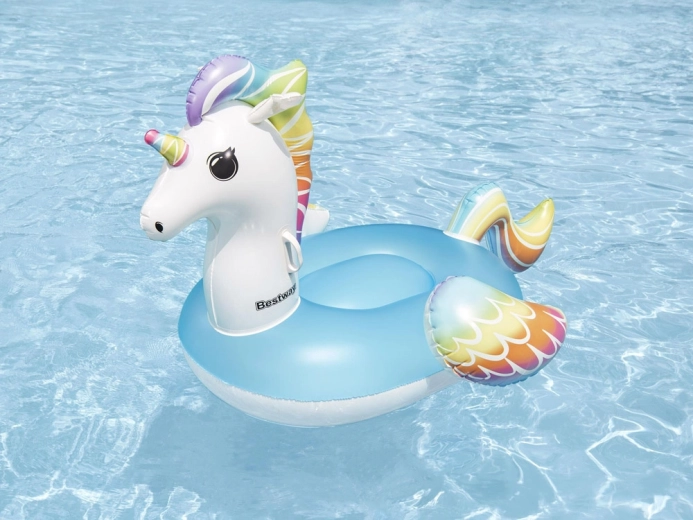 Adorabile galleggiante gonfiabile a forma di unicorno del marchio Bestway che entusiasmerà bambini e genitori. Offre un ampio sedile, 2 maniglie robuste per maggiore sicurezza durante la corsa, valvole di sicurezza e resistente vinile testato da 0,22 mm. Ideale per piscina, lago e mare per divertimento e relax.