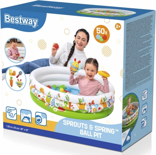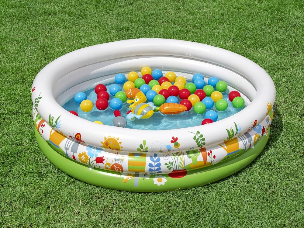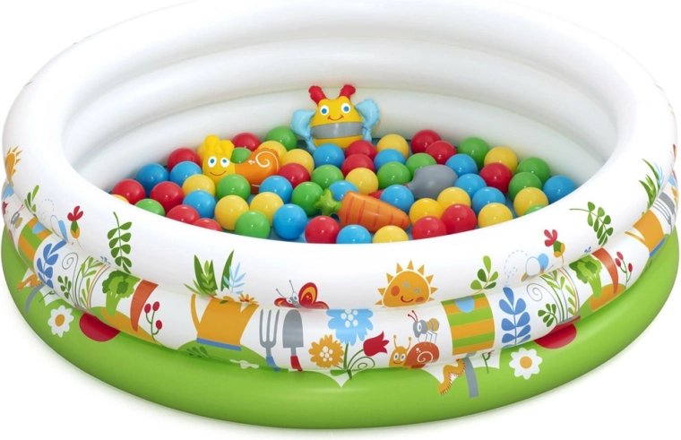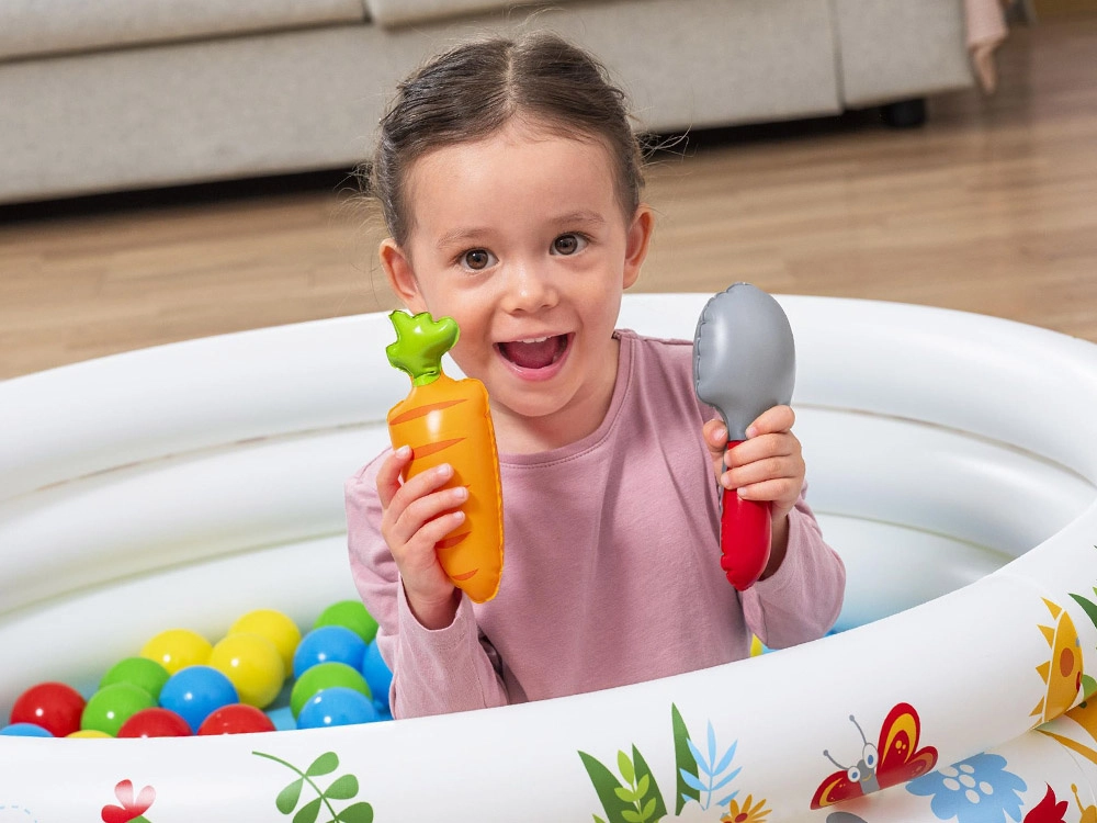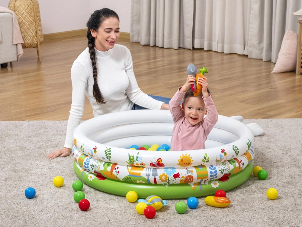 Scopri il giocoso mondo della primavera con motivi floreali, apine e orto. Bestway Sprouts & Spring offre pareti gonfiabili e morbide per un gioco sicuro, che sviluppa motricità fine, coordinazione e percezione sensoriale grazie a colori, forme e texture. Nelle giornate calde si riempie facilmente d’acqua e si trasforma in una rinfrescante piscinetta.