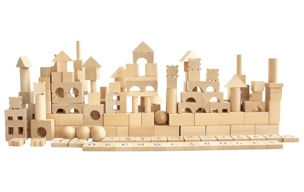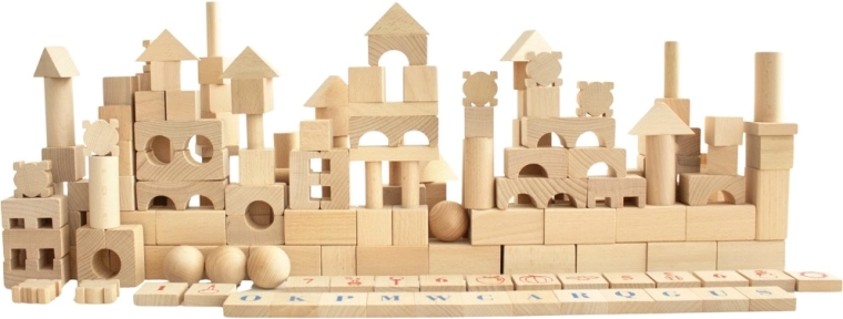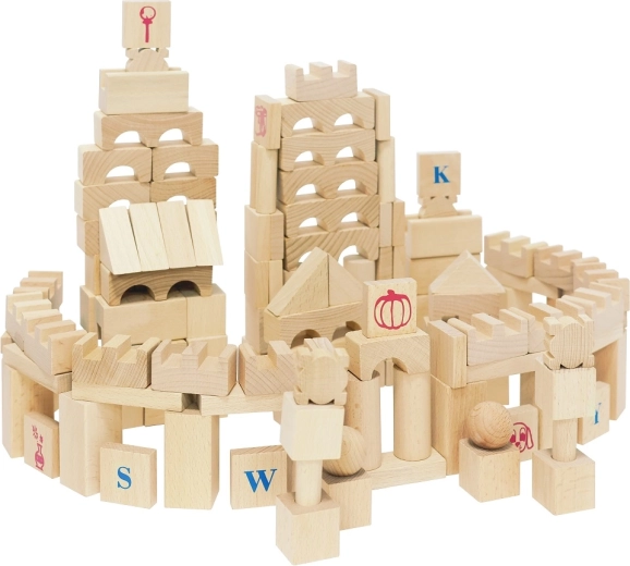Scoprite il divertimento senza tempo con il grande set di blocchi in legno naturale. Con 220 forme diverse, i bambini possono costruire facilmente castelli, torri, ponti e intere città. La superficie liscia e la lavorazione di qualità garantiscono un gioco sicuro, mentre lettere, numeri e simboli su alcuni pezzi favoriscono un apprendimento naturale attraverso il gioco.