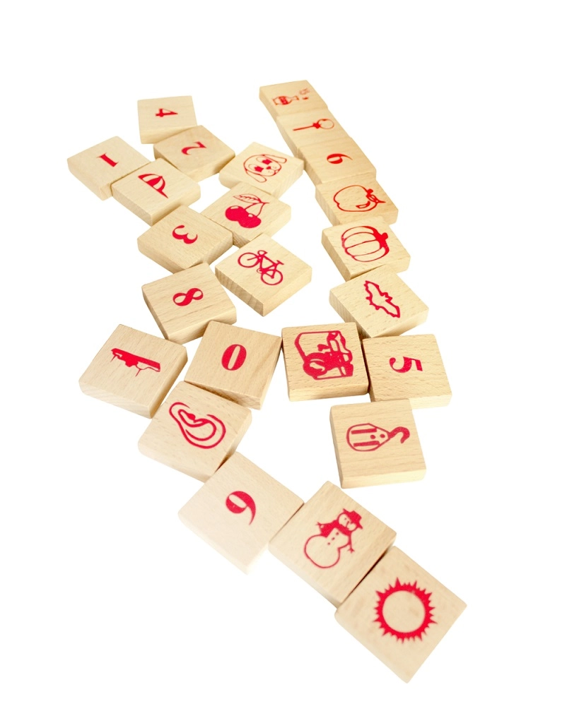 Alcuni pezzi stampati favoriscono la conoscenza dell’alfabeto, dei numeri e di semplici icone – ideale per i primi conti e la composizione di parole.