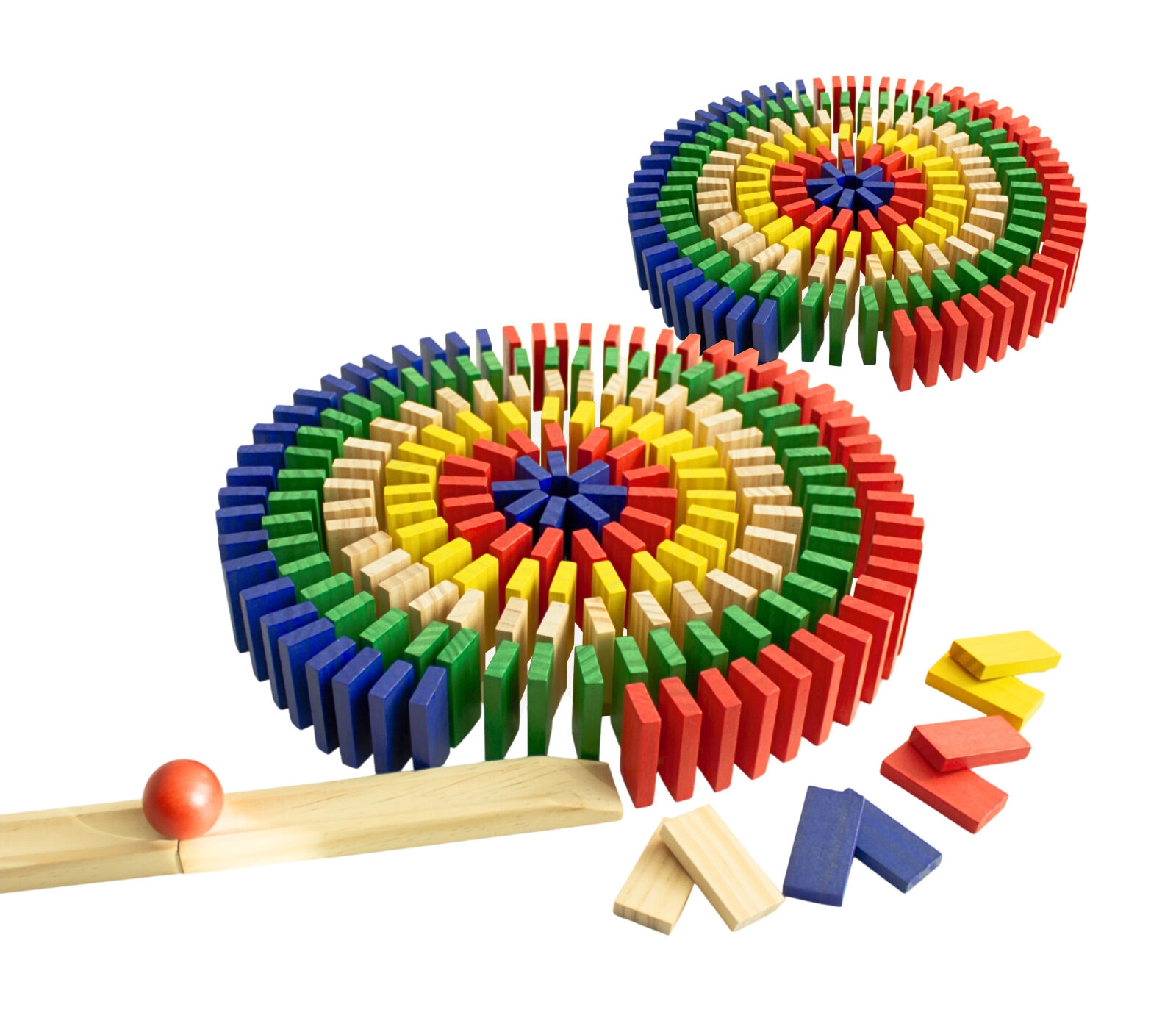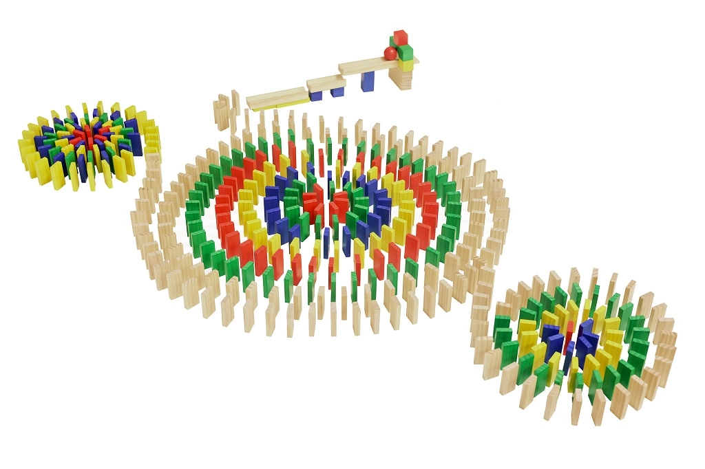 Include una rampa in legno e una biglia per un avvio spettacolare del domino. Goditi cadute fluide e stabili.