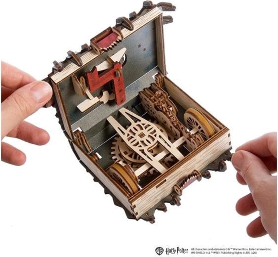 Questo kit ufficiale UGEARS, un puzzle meccanico 3D in legno, porta a casa tua l’iconico libro dal mondo magico di HARRY POTTER. L’ingegnoso meccanismo a cordicella mette in movimento il modello: il “libro” scivola sul tavolo, mentre i bordi dentati si aprono e si chiudono e gli occhi scattano in modo giocoso. L’assemblaggio è pulito e preciso: i vari pezzi si incastrano senza bisogno di colla o attrezzi.
