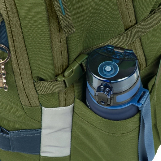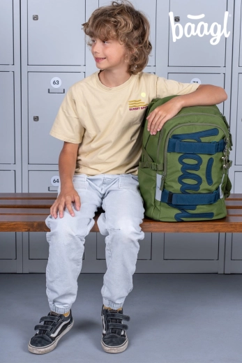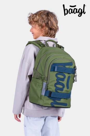 BAAGL Skate Olive GRS è uno zaino scolastico moderno progettato per il comfort e la sicurezza quotidiani. Con un peso sotto i 900 g e uno schienale anatomico con rinforzo lombare, si adatta perfettamente ai bambini e protegge la schiena. Tre scomparti separati con pratico organizer tengono in ordine libri, quaderni e piccoli oggetti, mentre la tasca imbottita ospita in sicurezza un laptop o tablet da 15".