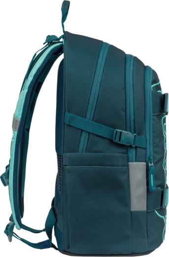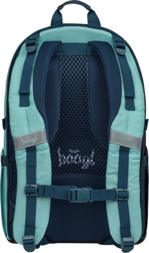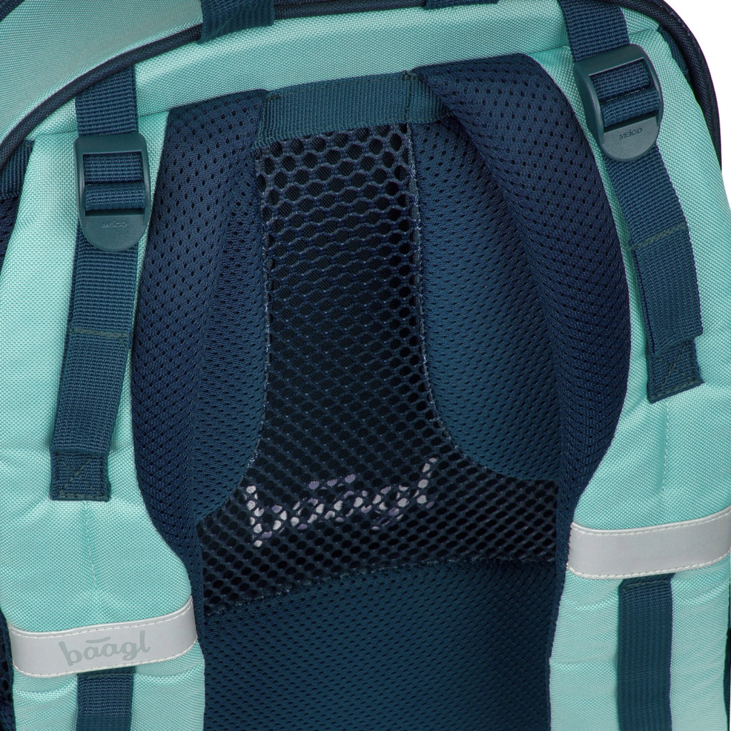 BAAGL Skate Petrol GRS combina design moderno, ergonomia e produzione sostenibile. Lo schienale anatomicamente sagomato con rinforzo lombare e l’imbottitura traspirante assicurano comfort per tutto il giorno. Grazie alle cinghie di compressione completamente regolabili, lo zaino si adatta perfettamente alla corporatura e mantiene stabile il carico.