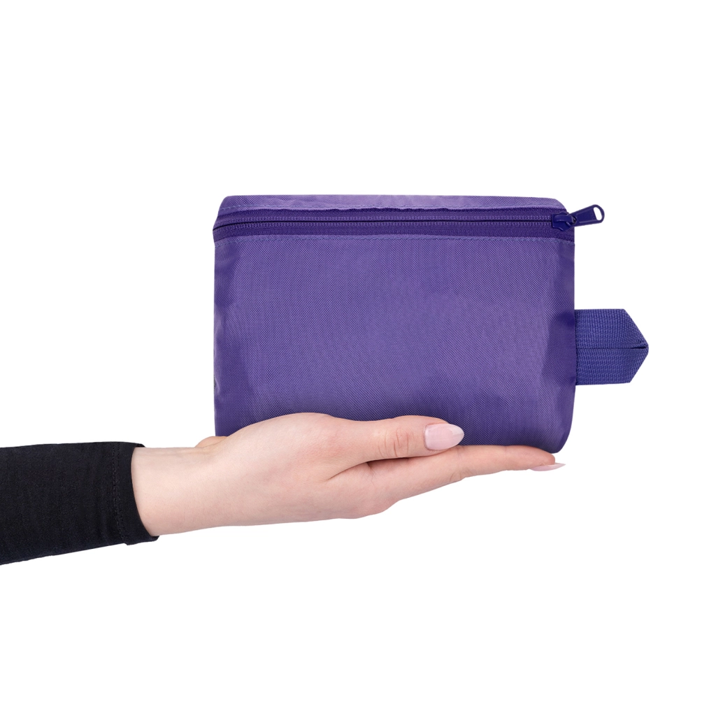Borsa leggera con due manici e tracolla regolabile, portata fino a 5 kg. Si ripiega facilmente nella tasca integrata e si aggancia allo zaino.