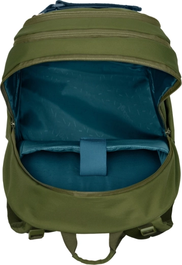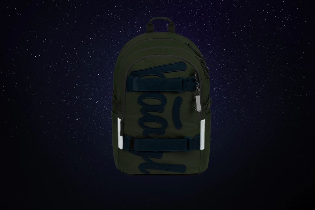 Lo zaino SKATE OLIVE ha uno schienale anatomicamente sagomato con supporto lombare, cinghie di compressione completamente regolabili e tre scomparti separati. All'interno trovi una tasca imbottita per laptop o tablet da 15" e un pratico organizer. Le tasche laterali ospitano una bottiglia e gli elementi riflettenti aumentano la visibilità.