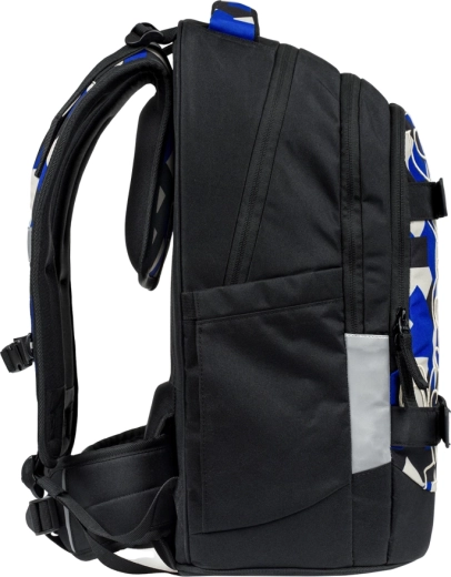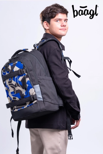 Il set scolastico BAAGL Skate Max Variety è pensato per bambini dalla circa 3ª classe della scuola primaria fino agli studenti. Il protagonista è lo zaino compatto in materiale riciclato e idrorepellente con sistema dorsale regolabile per stature 135–185 cm. I rinforzi in EVA mantengono la forma, la cintura lombare removibile alleggerisce la schiena e i numerosi elementi riflettenti aumentano la visibilità. Organizzazione a tre scomparti con tasca in velluto per laptop che protegge l’elettronica, tasche laterali per la borraccia e cerniere YKK a doppio cursore per un accesso facile.