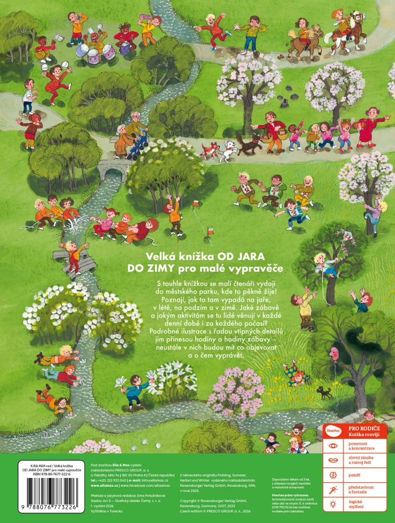 Esplora il parco cittadino in ogni stagione con questo libro splendidamente illustrato per bambini. Illustrazioni colorate e dettagliate, piene di momenti divertenti, offriranno ore di divertimento e stimoleranno immaginazione, fantasia e vocabolario. I piccoli lettori scopriranno continuamente nuovi dettagli e storie da raccontare – dalla primavera all’inverno, con ogni tempo e in ogni momento della giornata.