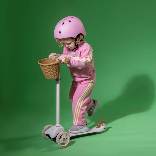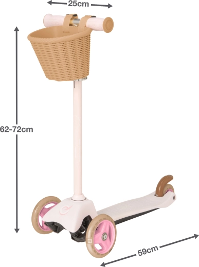 Il pratico cestino removibile sul manubrio permette di portare sempre con sé i piccoli oggetti preferiti. Altezza del manubrio regolabile 62–72 cm e struttura leggera facilitano la guida e il trasporto. Grazie all’attraente colore rosa, i bambini lo adoreranno e i genitori apprezzeranno i dettagli di sicurezza ben studiati.
