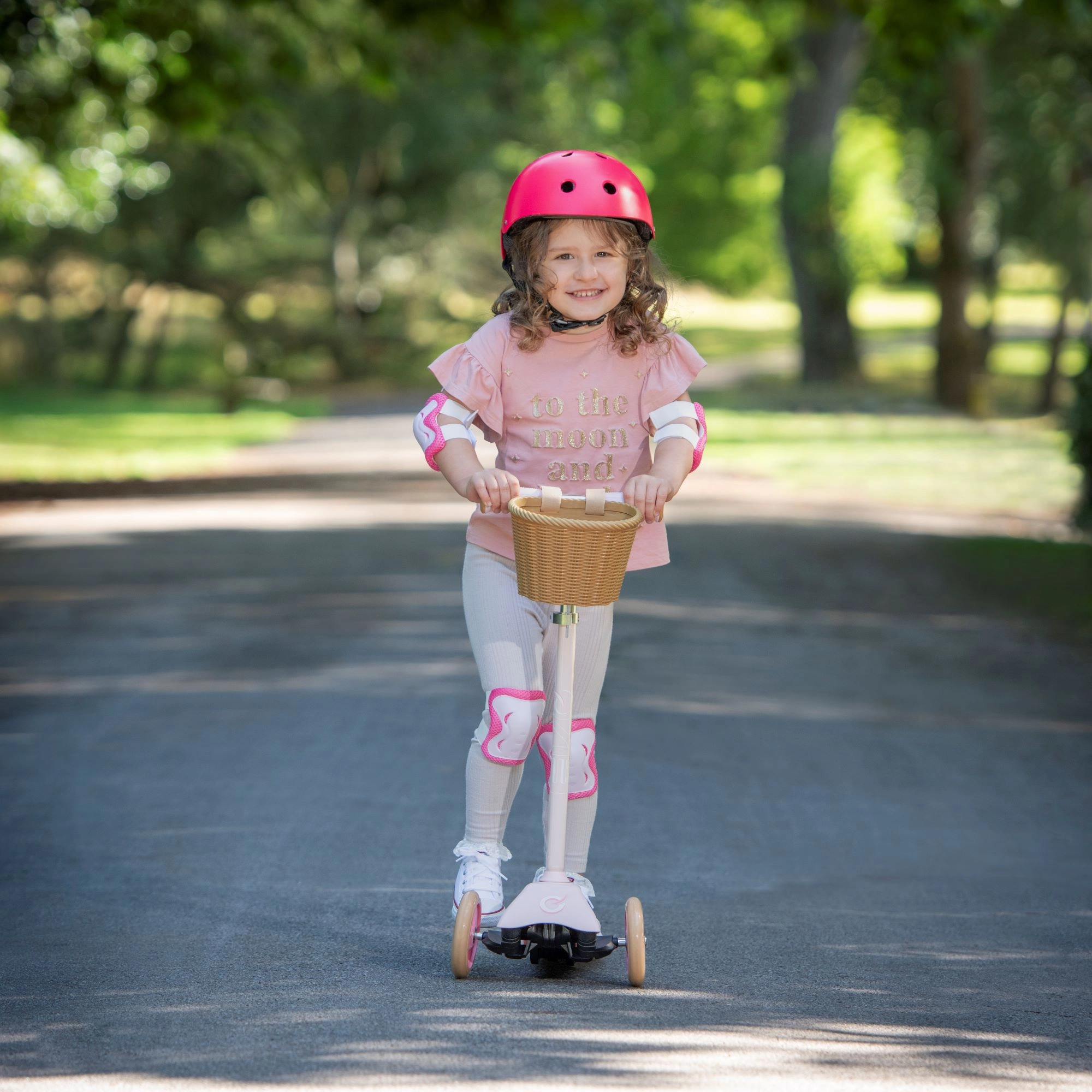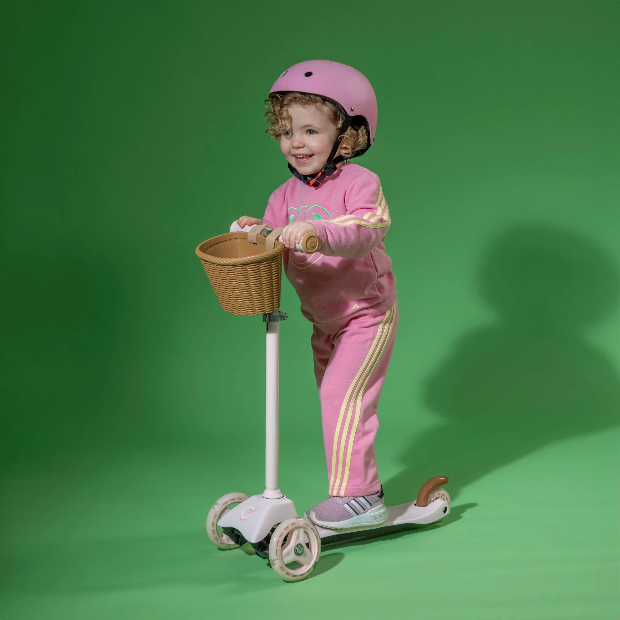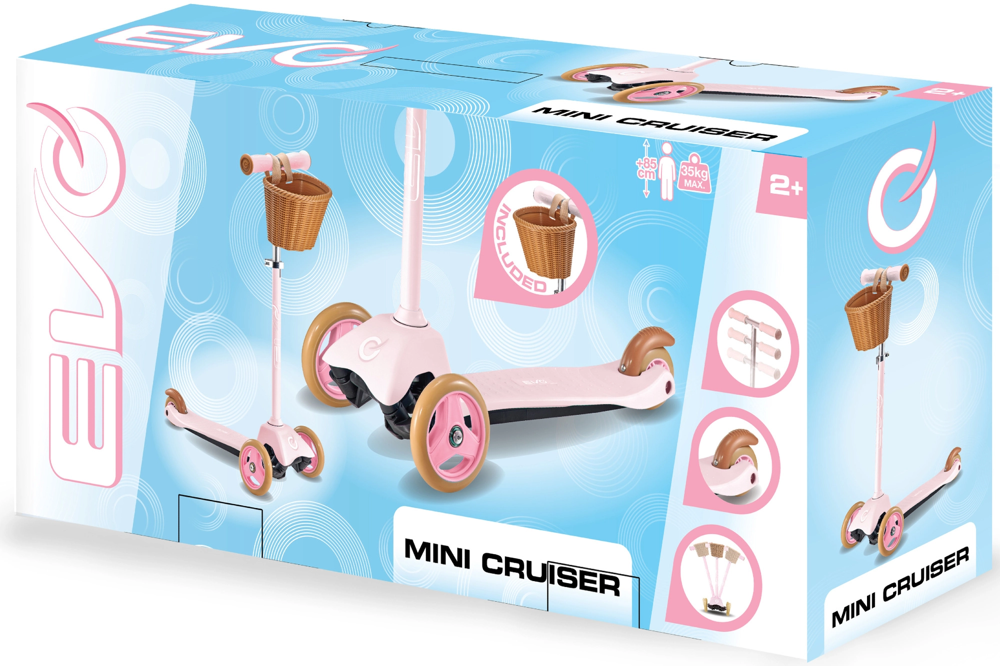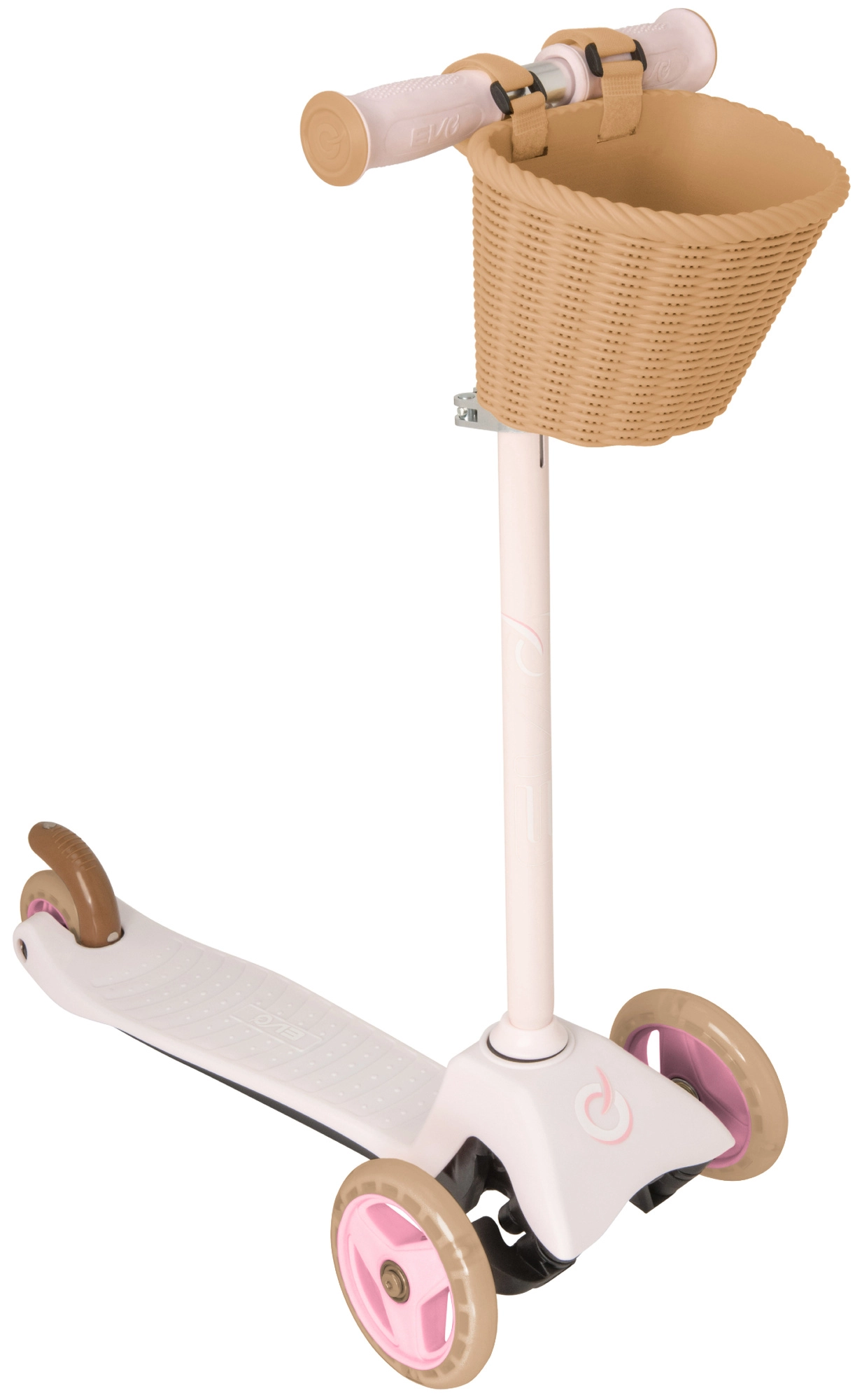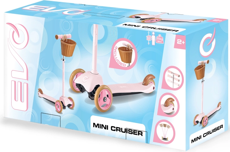 Il monopattino rosa EVO Mini Cruiser è ideale per i più piccoli dai 2 anni. Grazie alle tre ruote, alla pedana ampia e stabile e al freno posteriore a pedale, i bambini imparano equilibrio e coordinazione in modo sicuro e divertente. Il manubrio regolabile in altezza cresce con il bambino e il cestino removibile ospita piccoli oggetti per il viaggio.
