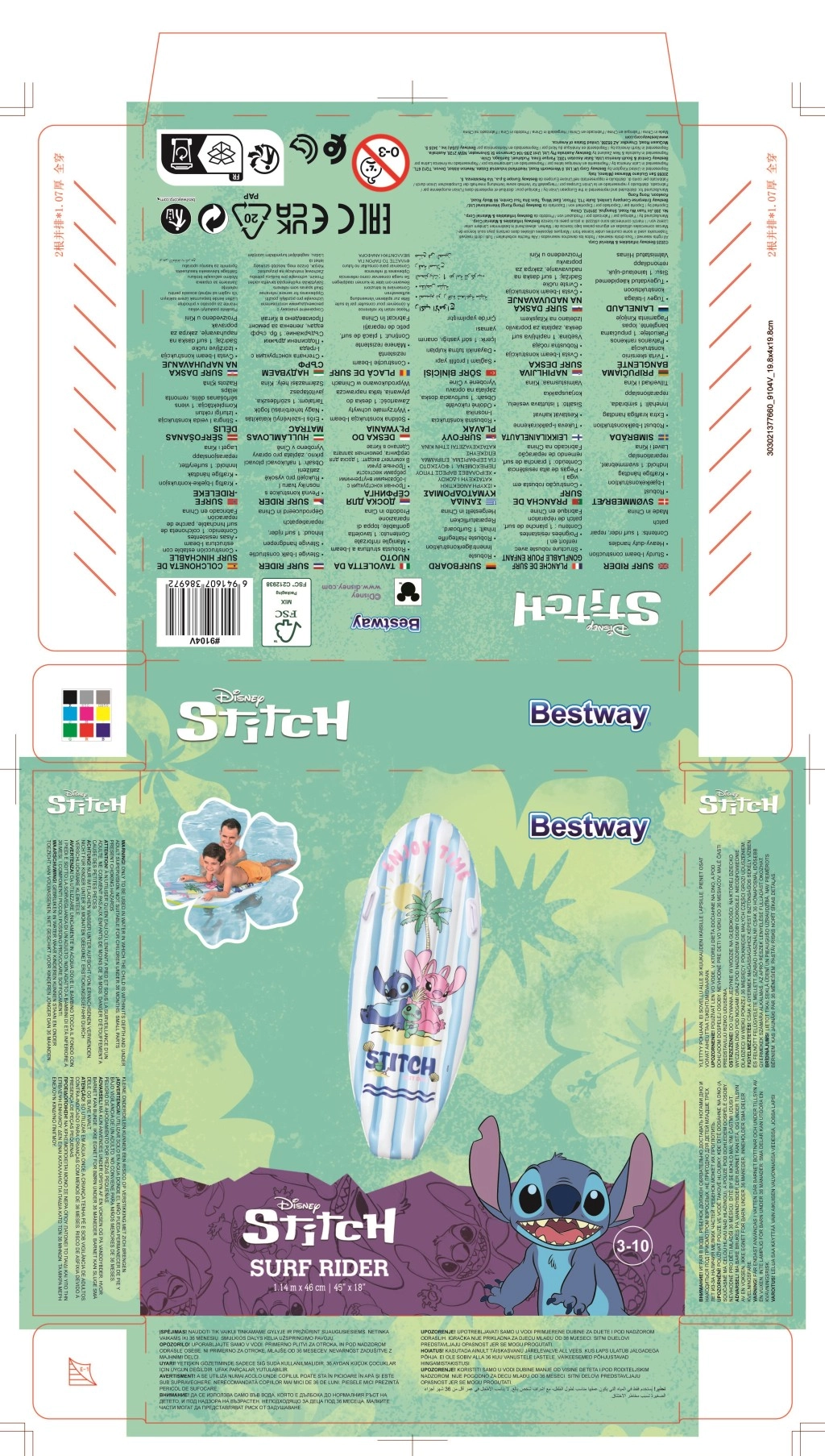 La stampa accattivante con Stitch, palme e conchiglie favorisce il divertimento e migliora la visibilità della tavola in acqua.